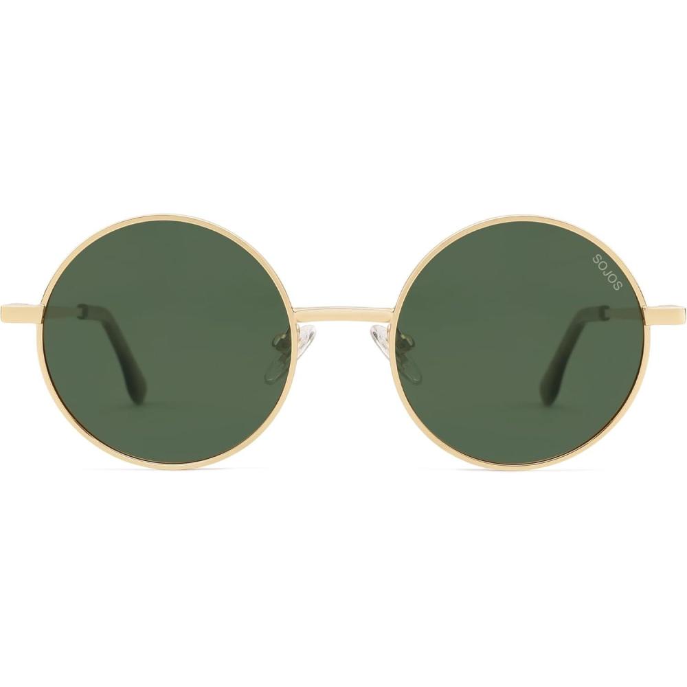 SOJOS Small Round Polarized Sunglasses for Women Men Retro Sun Glasses Vintage Shades UV400 Protection SJ1243(Shiny Gold / Green Lens)