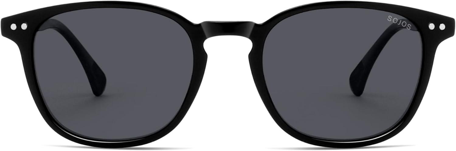 SOJOS Small Rounded Square Polarized Sunglasses for Women Men Vintage Style UV400 Lens SJ2637(Black/Grey)