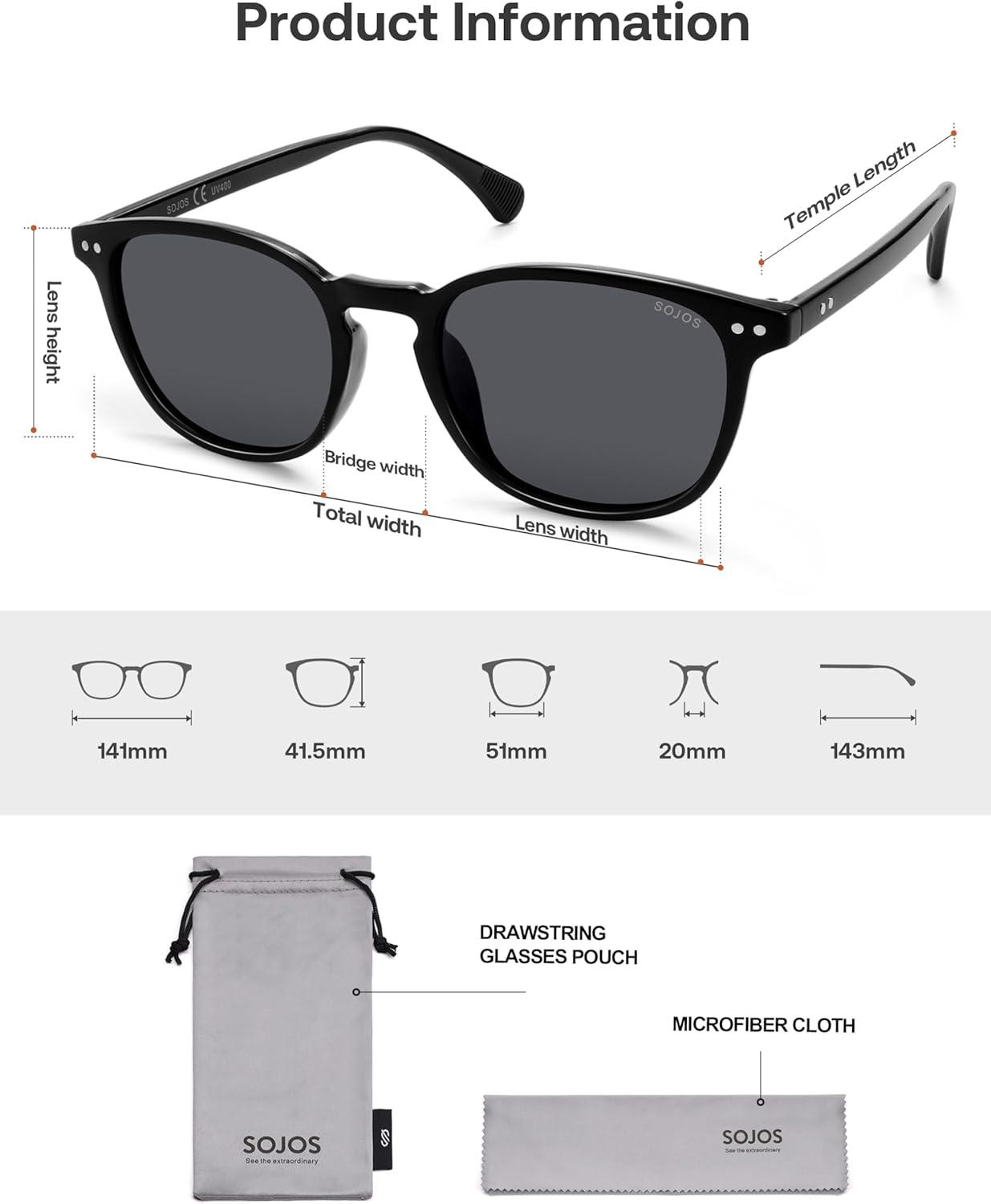 Be the first to review “SOJOS Small Rounded Square Polarized Sunglasses for Women Men Vintage Style UV400 Lens SJ2637(Black/Grey)”