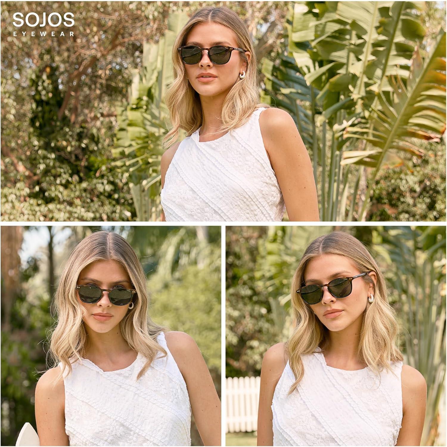 imageSOJOS Small Rounded Square Polarized Sunglasses for Women Men Vintage Style UV400 Lens SJ2637TortoiseGreen