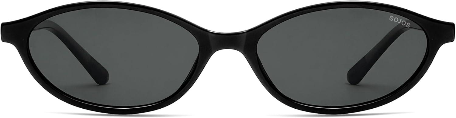 SOJOS TR90 Ultra Light Flexible Sunglasses for Women Retro Oval Polarized Cat Eye Vintage Shades UV400 Protection Comfort Fit(Black/Grey)