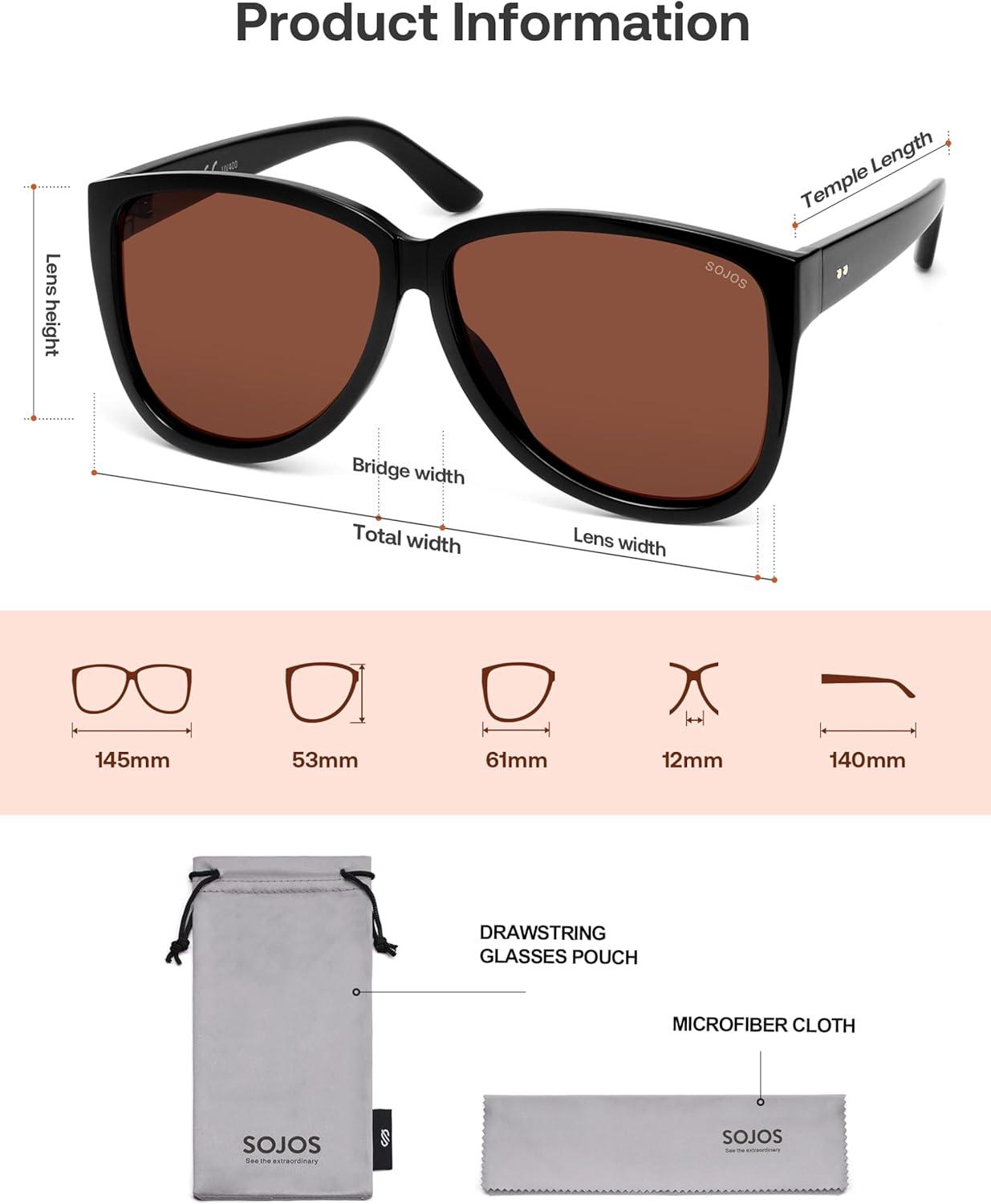 SOJOS Trendy Big Oversized Polarized Sunglasses Womens Mens, 70s 80s Large Retro Vintage Pilot Shades SJ2643(Black/Grey)