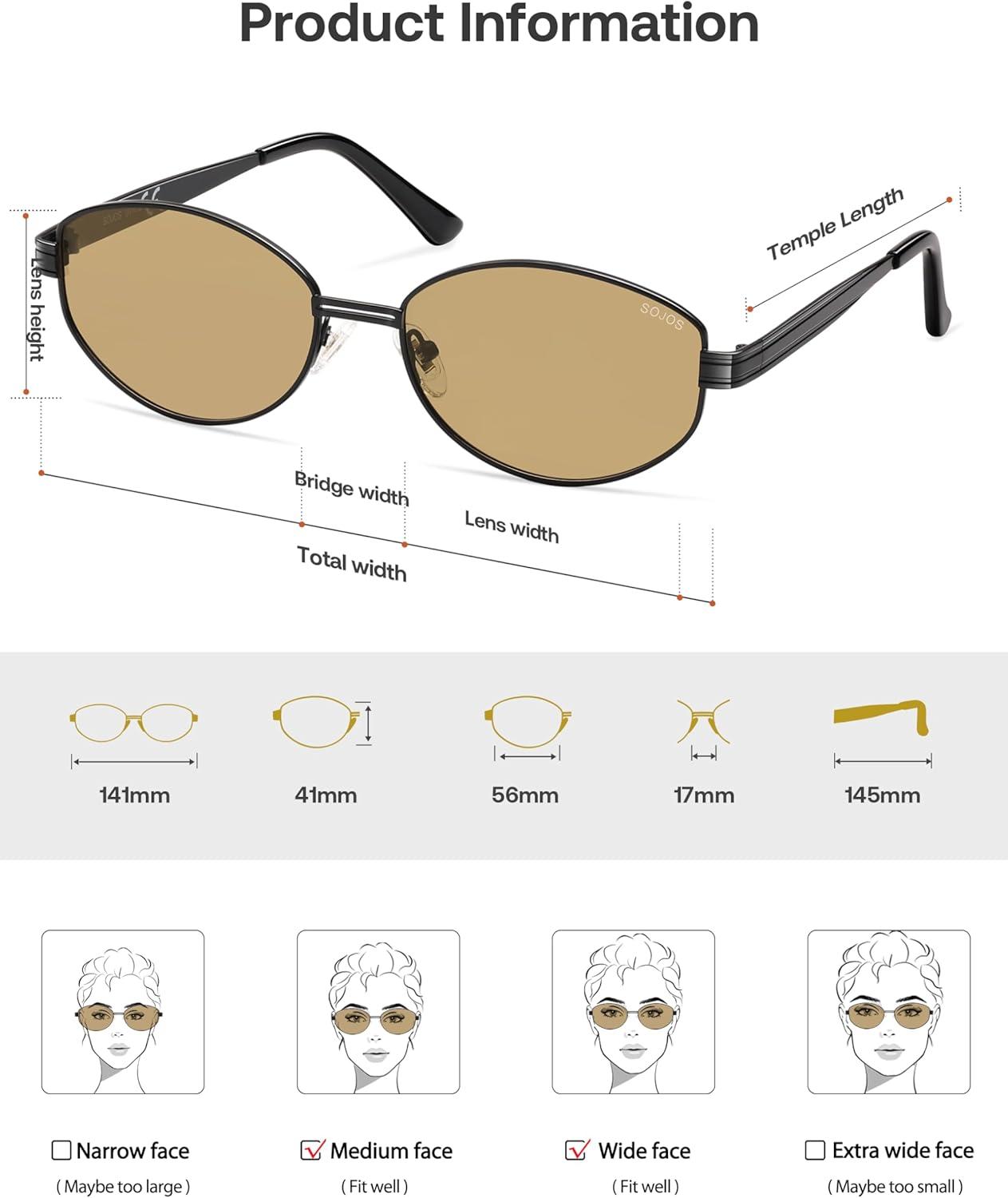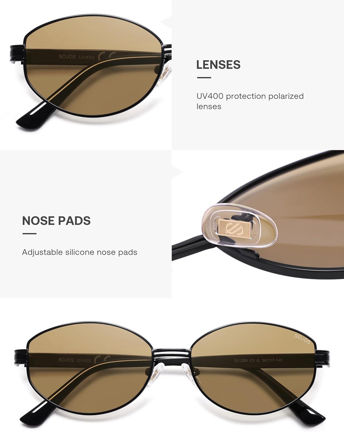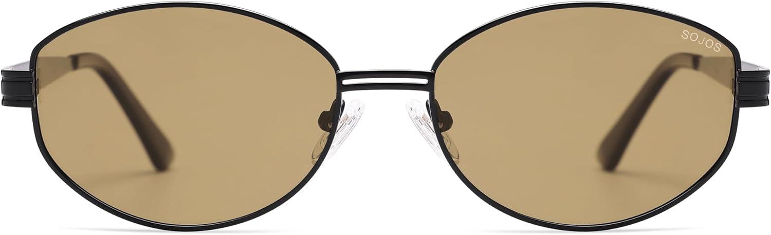 SOJOS Trendy Oval Polarized Sunglasses for Women Men, Retro Fashion Round Shades SJ1255(Black/Light Brown)
