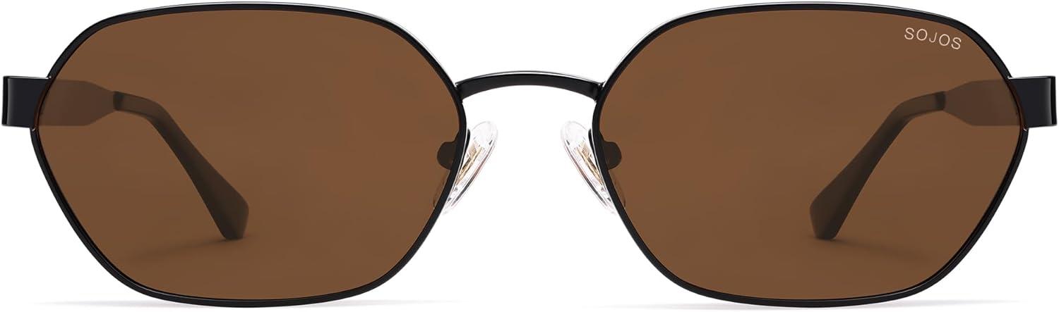 SOJOS Trendy Polarized Hexagon Sunglasses for Women Men, UV400 Retro Rectangle Shades SJ1238(Black/Brown)