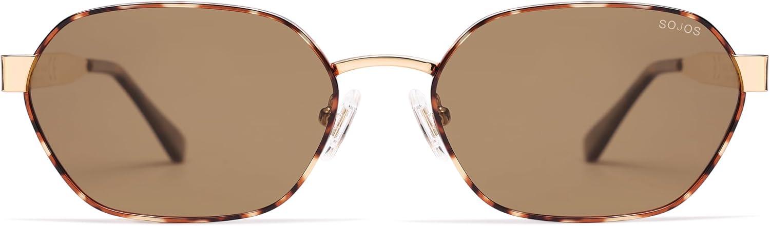 SOJOS Trendy Polarized Hexagon Sunglasses for Women Men, UV400 Retro Rectangle Shades SJ1238(Tortoise/Brown)