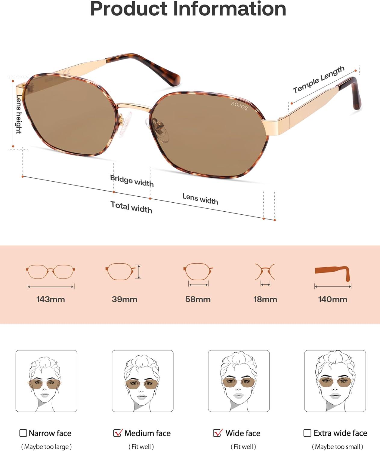 imageSOJOS Trendy Polarized Hexagon Sunglasses for Women Men UV400 Retro Rectangle Shades SJ1238TortoiseBrown