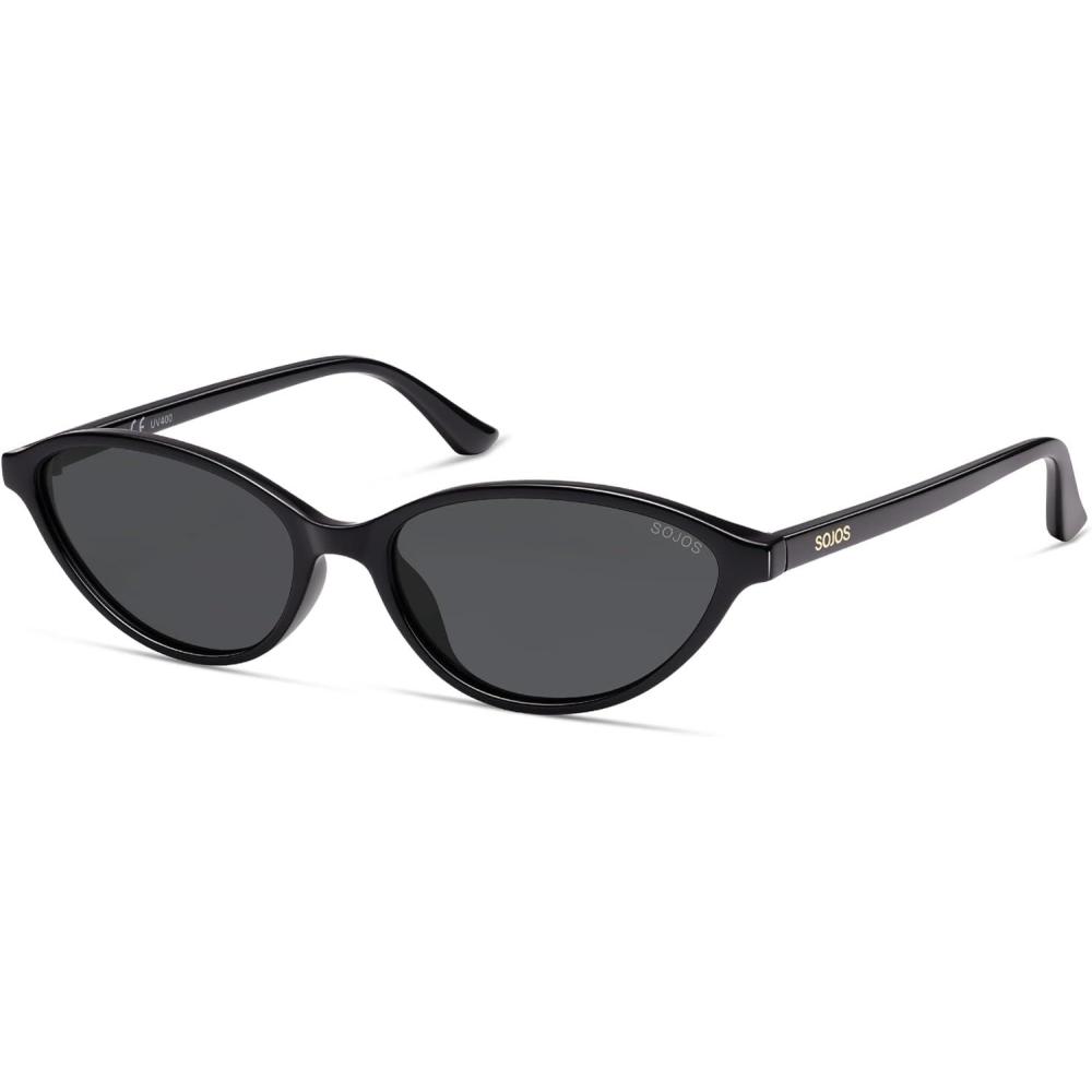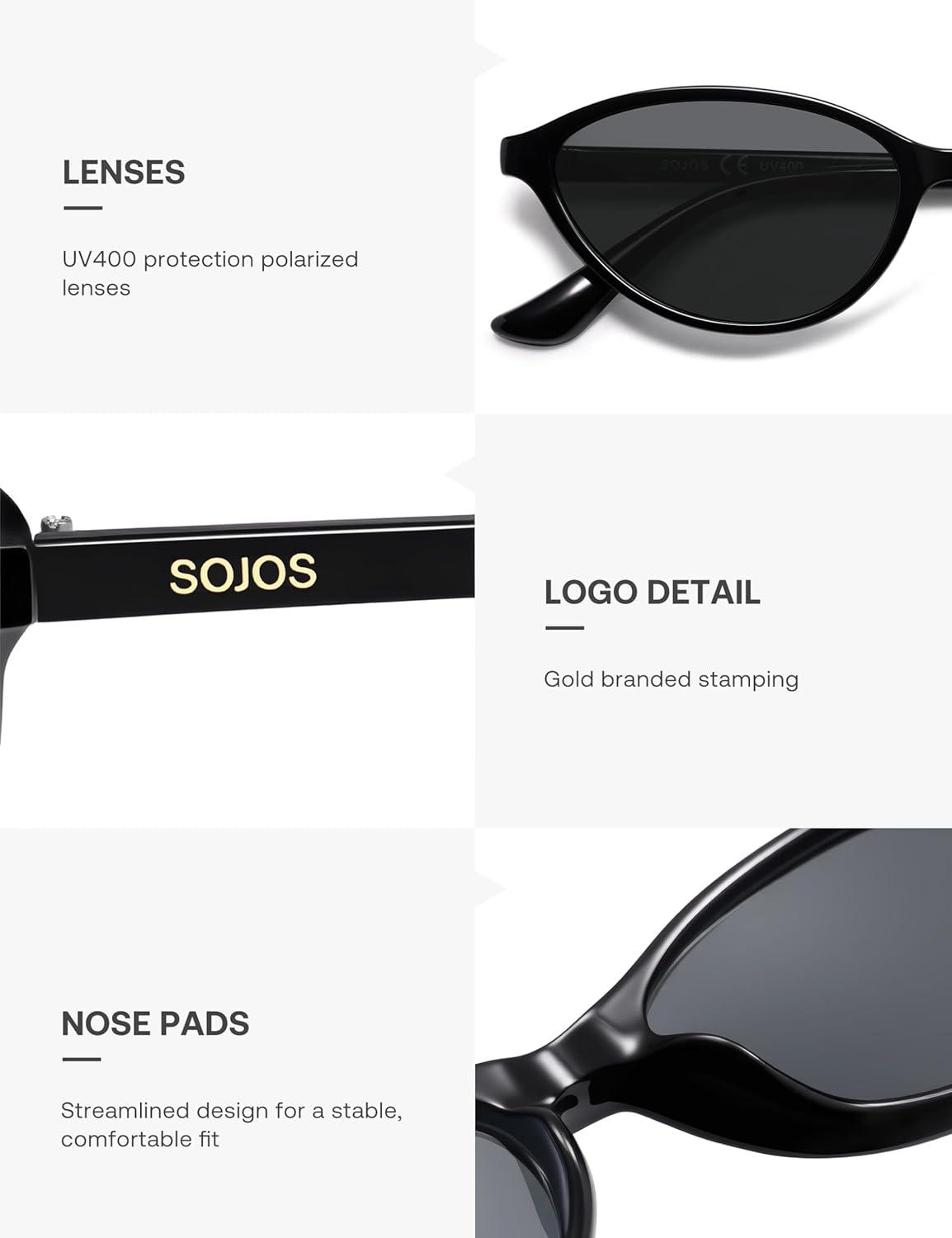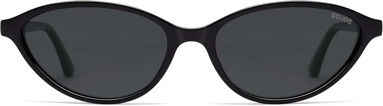 imageSOJOS Trendy Polarized Oval Sunglasses for Women Retro Chic 90s Shades Lightweight Sunnies SJ2656Black Frame Grey Lens