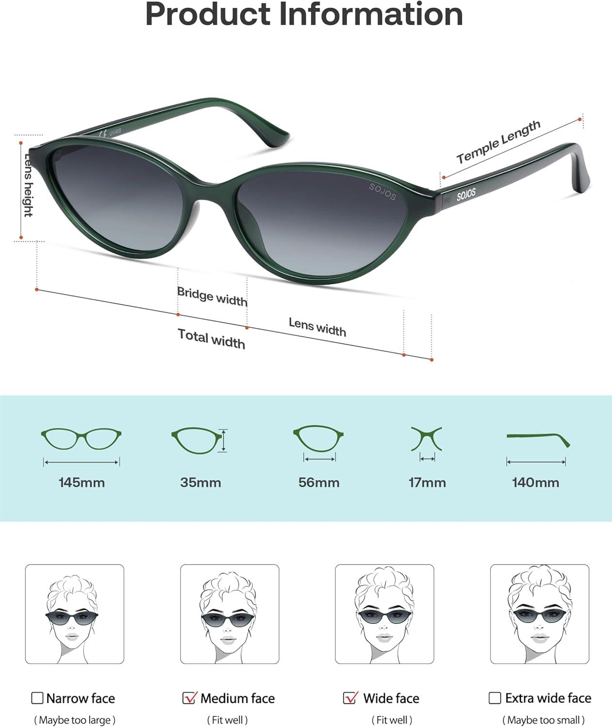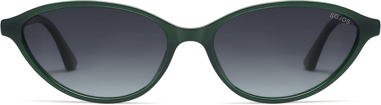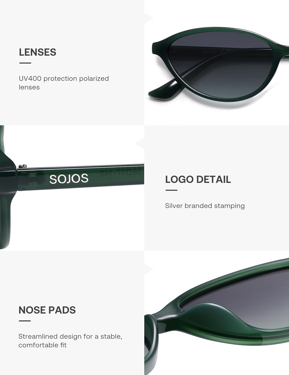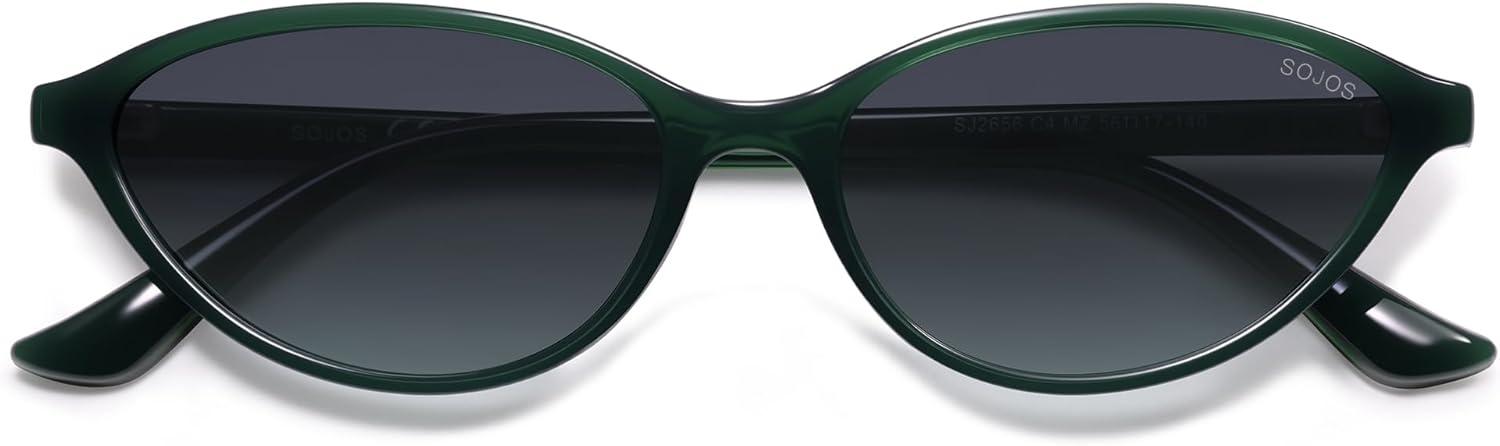 imageSOJOS Trendy Polarized Oval Sunglasses for Women Retro Chic 90s Shades Lightweight Sunnies SJ2656Green Frame Grey Grading Lens