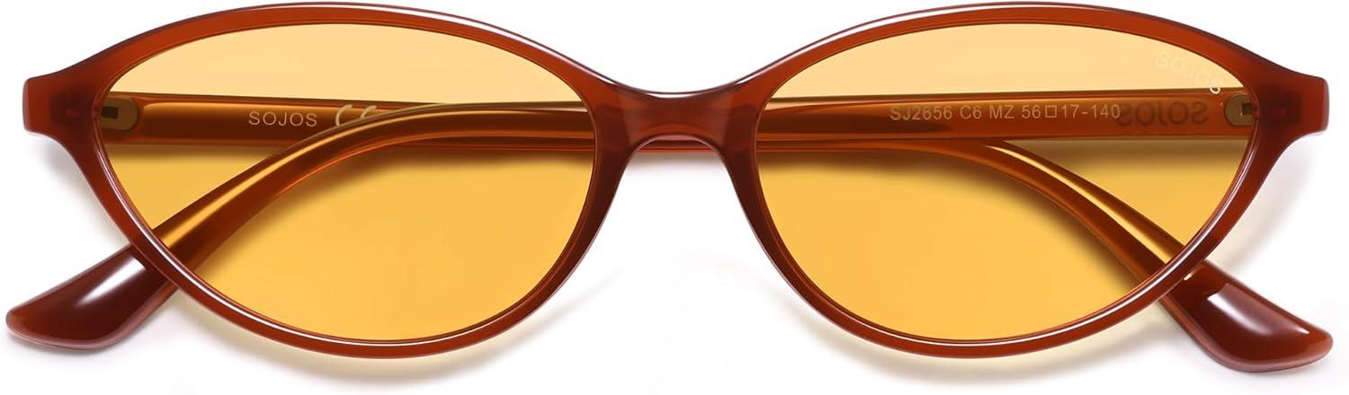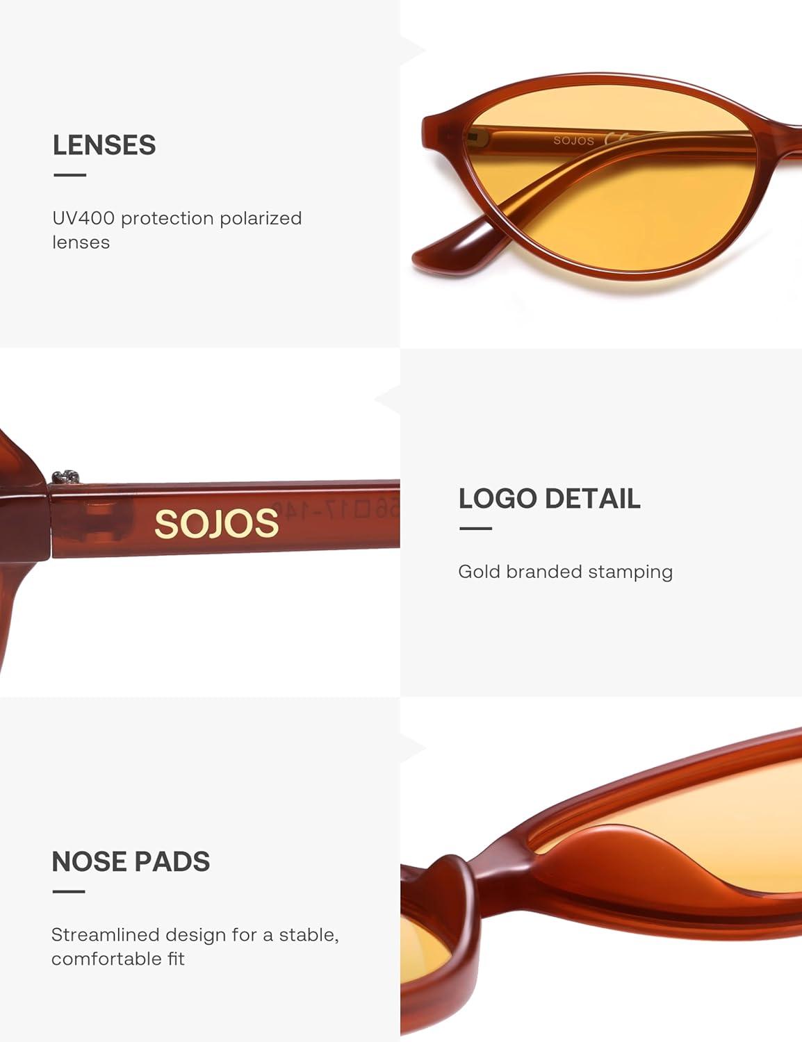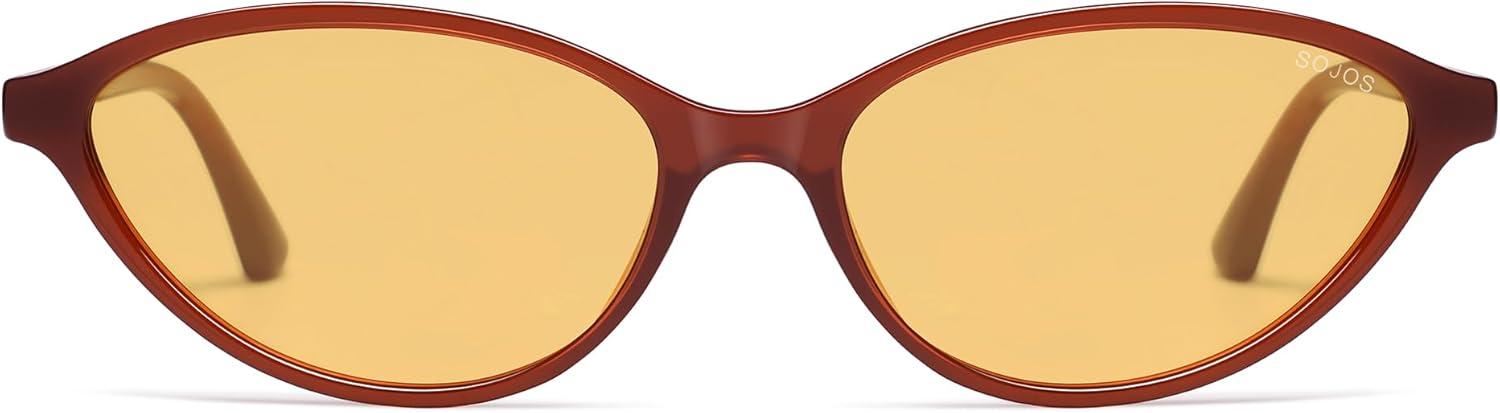 imageSOJOS Trendy Polarized Oval Sunglasses for Women Retro Chic 90s Shades Lightweight Sunnies SJ2656Milky Brown Frame Orange Lens