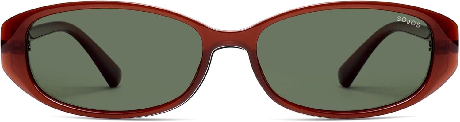 imageSOJOS Trendy Polarized Retro Oval Sunglasses for Women Chic 90s Sunnies Lightweight Narrow Shades SJ2641Milky Brown Frame Green Lens