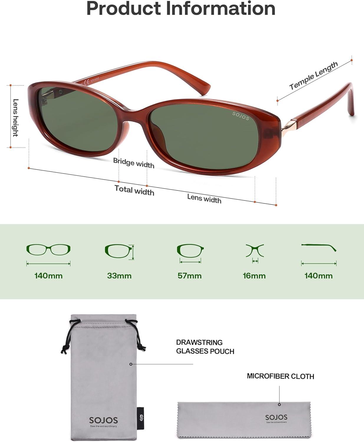 SOJOS Trendy Polarized Retro Oval Sunglasses for Women Chic 90s Sunnies Lightweight Narrow Shades SJ2641(Milky Brown Frame Green Lens)