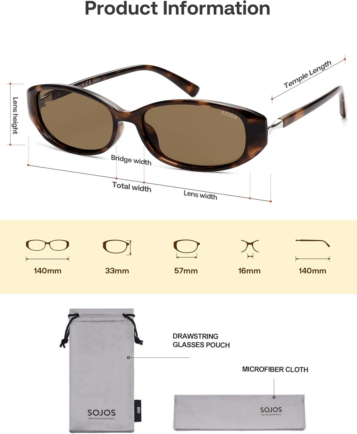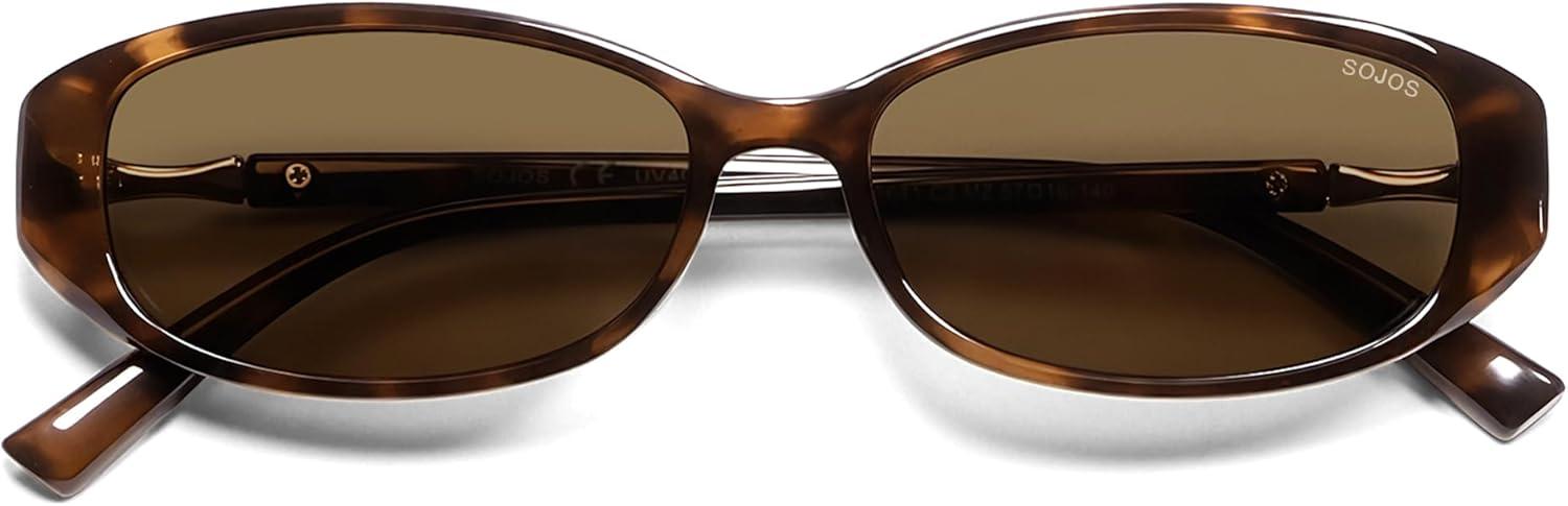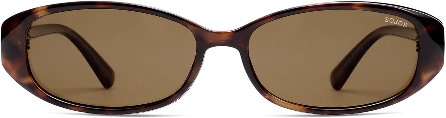 imageSOJOS Trendy Polarized Retro Oval Sunglasses for Women Chic 90s Sunnies Lightweight Narrow Shades SJ2641Tortoise Frame Brown Lens