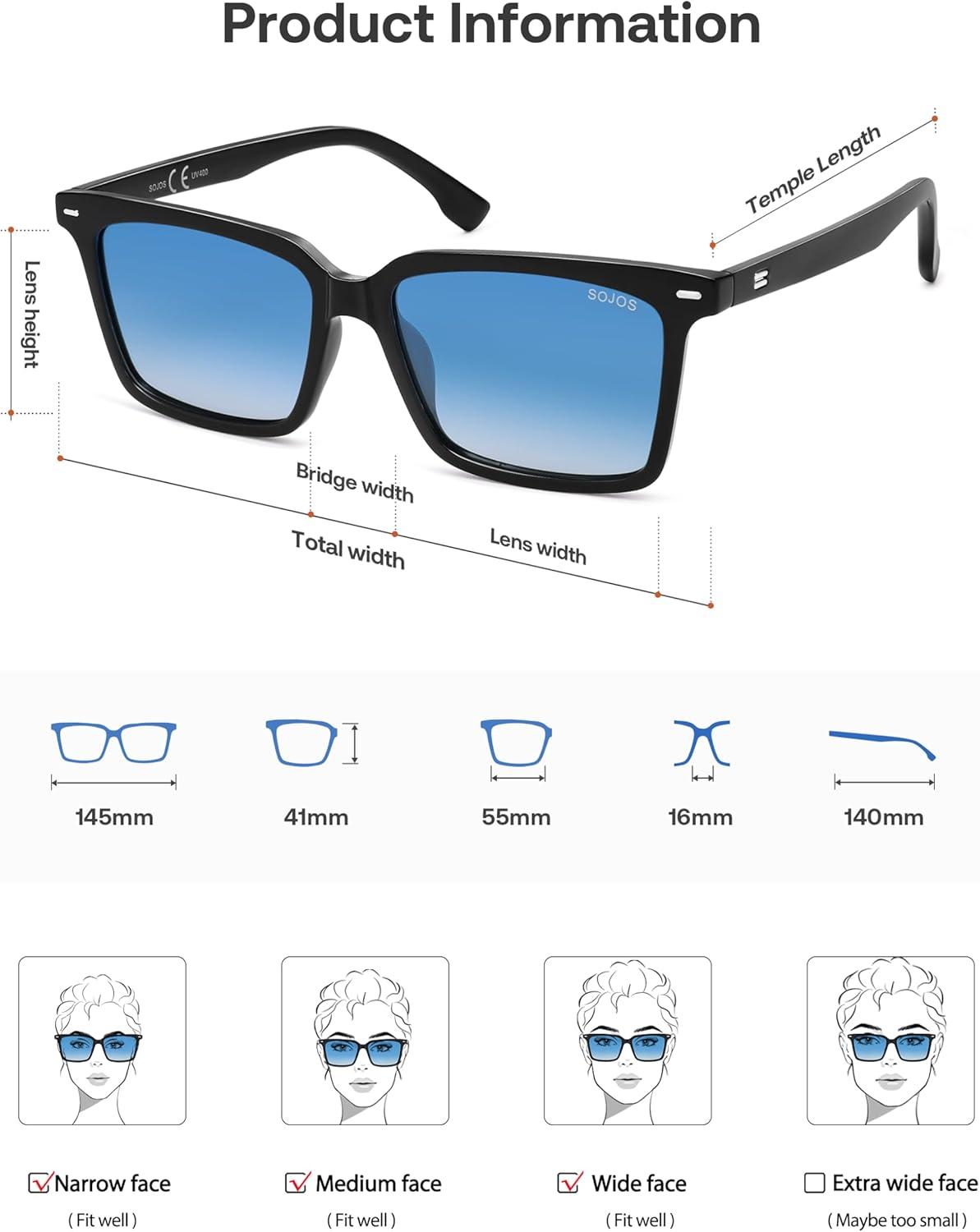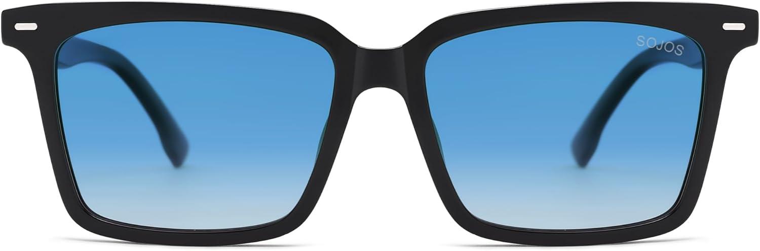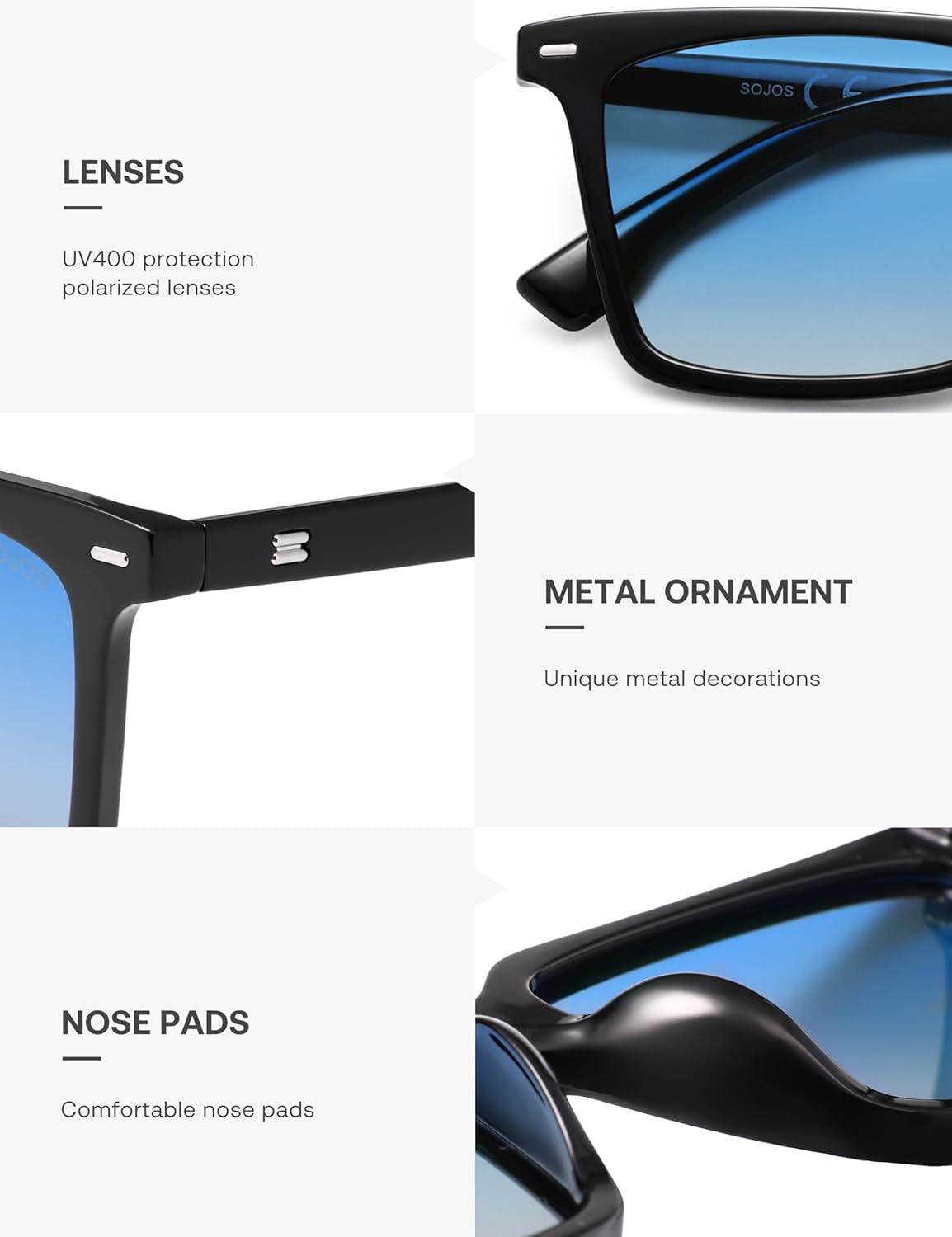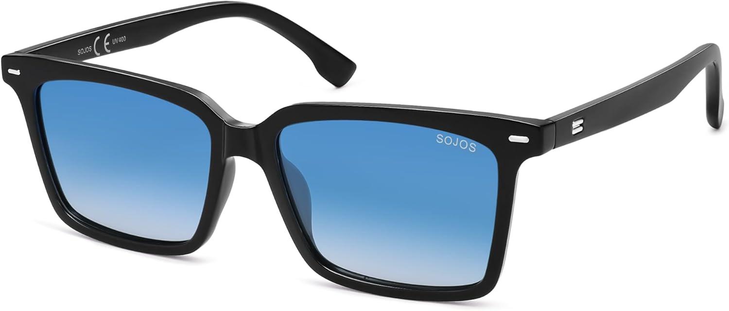 SOJOS Trendy Polarized Square Sunglasses Womens Men Retro Vintage 90s Sun Glasses SJ2387(Black Frame Blue Grading Lens)