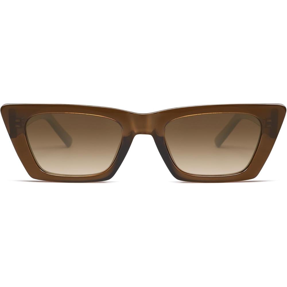 SOJOS Trendy Rectangle Polarized Sunglasses for Women Men Retro Narrow Cateye Sunnies SJ2354(Dark Brown/Gradient Brown)