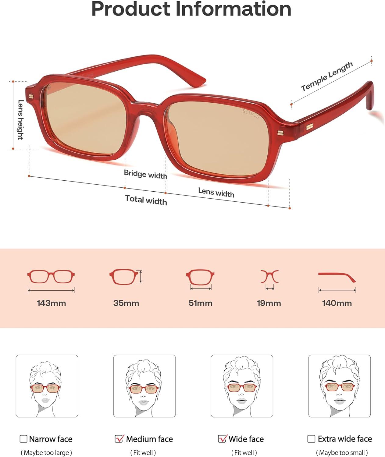 Be the first to review “SOJOS Trendy Rectangle Polarized Sunglasses for Women Men, Retro Small Thin Slim Narrow Square Sunnies SJ2610(Red/Light Brown Tint)”