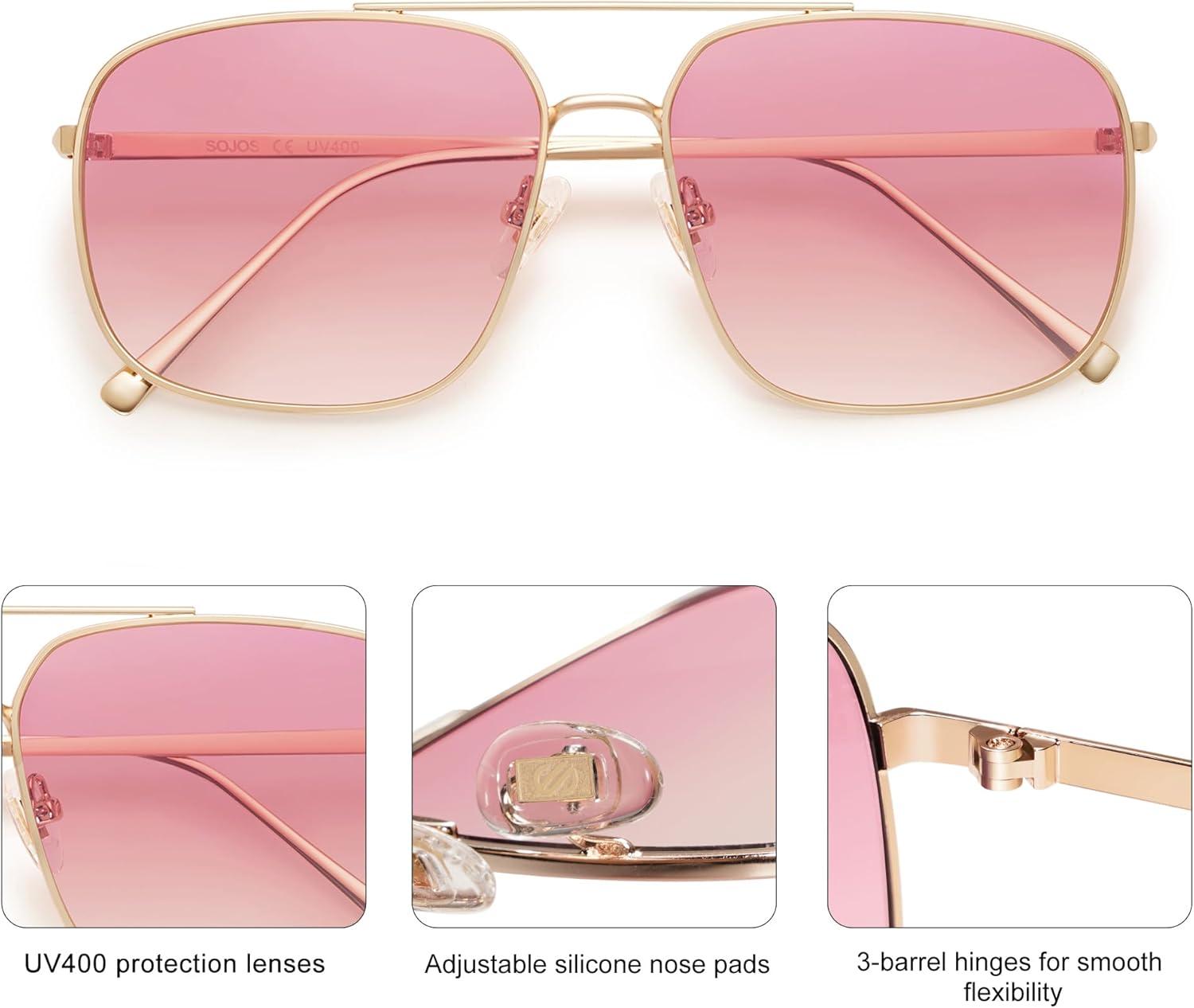 imageSOJOS Trendy Square Aviator Sunglasses for Women Men Gold Frame Light Tint Gradient Shades SJ1176GoldGradient Pink