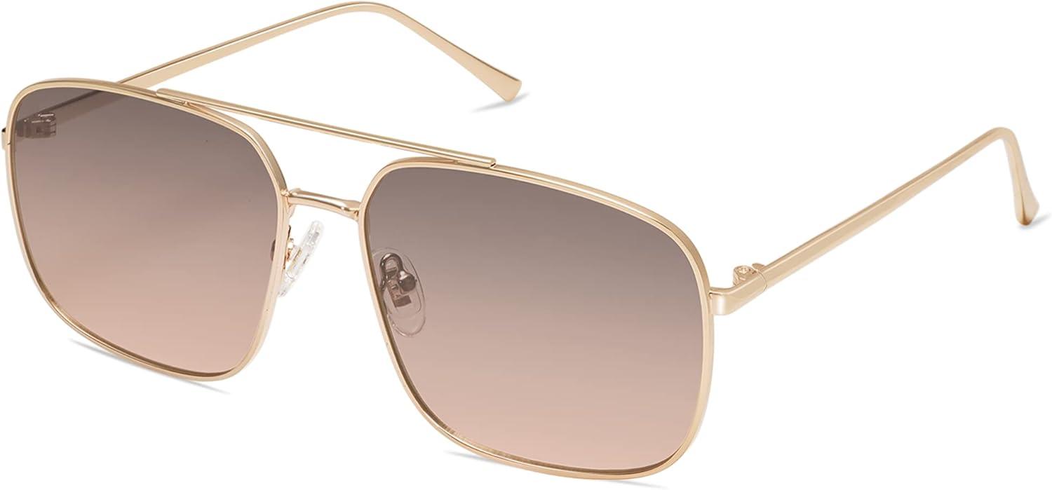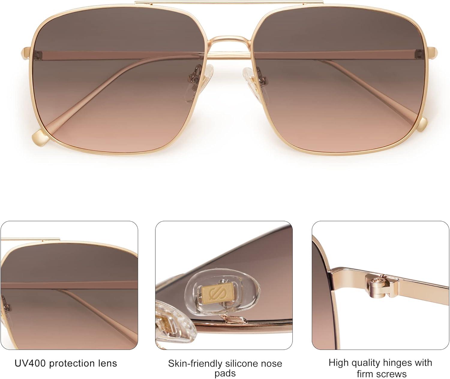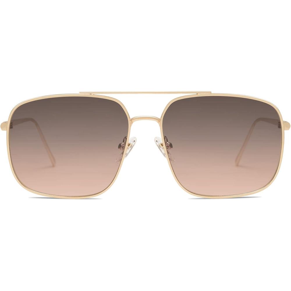 imageSOJOS Trendy Square Aviator Sunglasses for Women Men Gold Frame Light Tint Gradient Shades SJ1176GoldGrey Gradient Pink