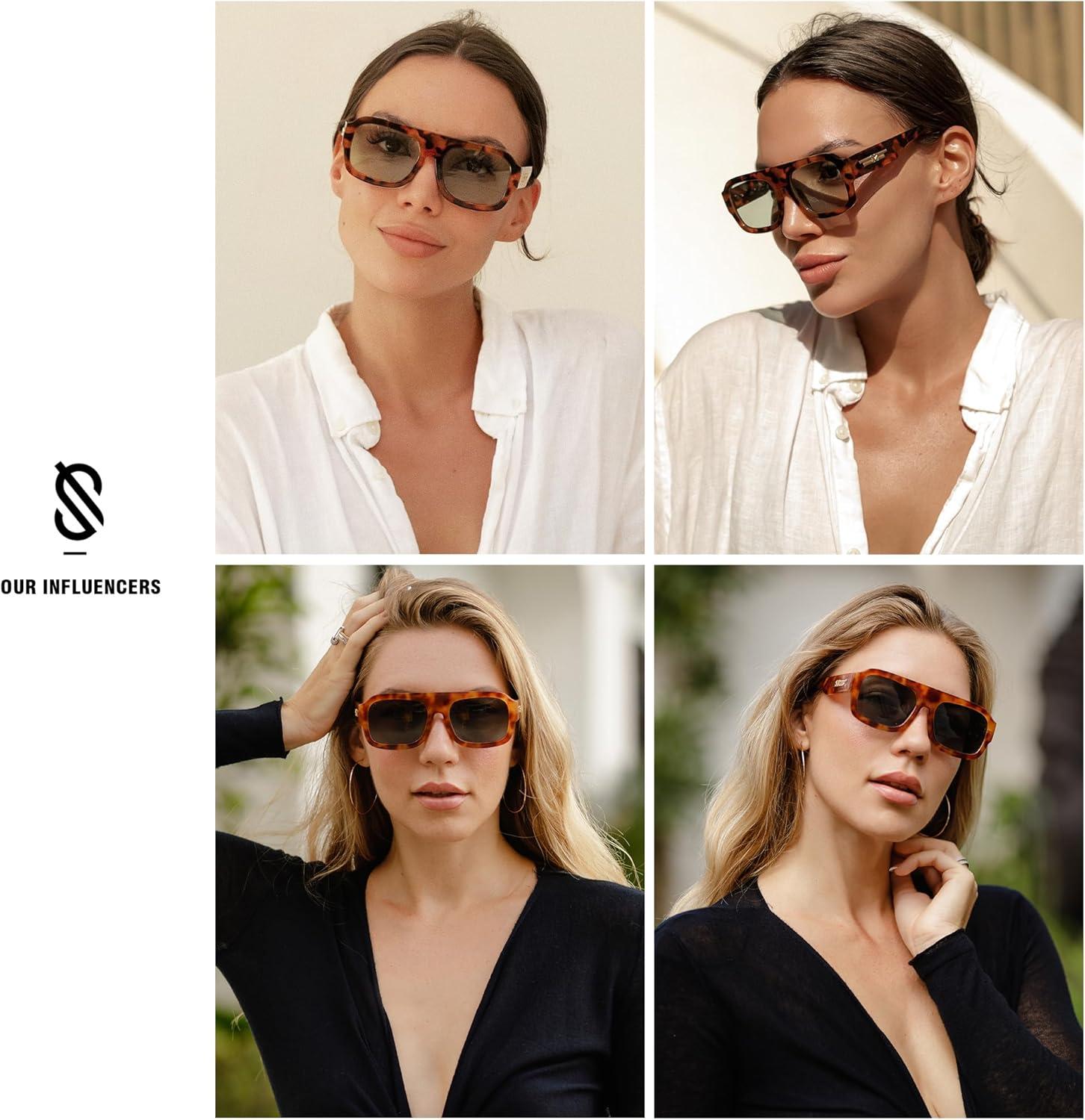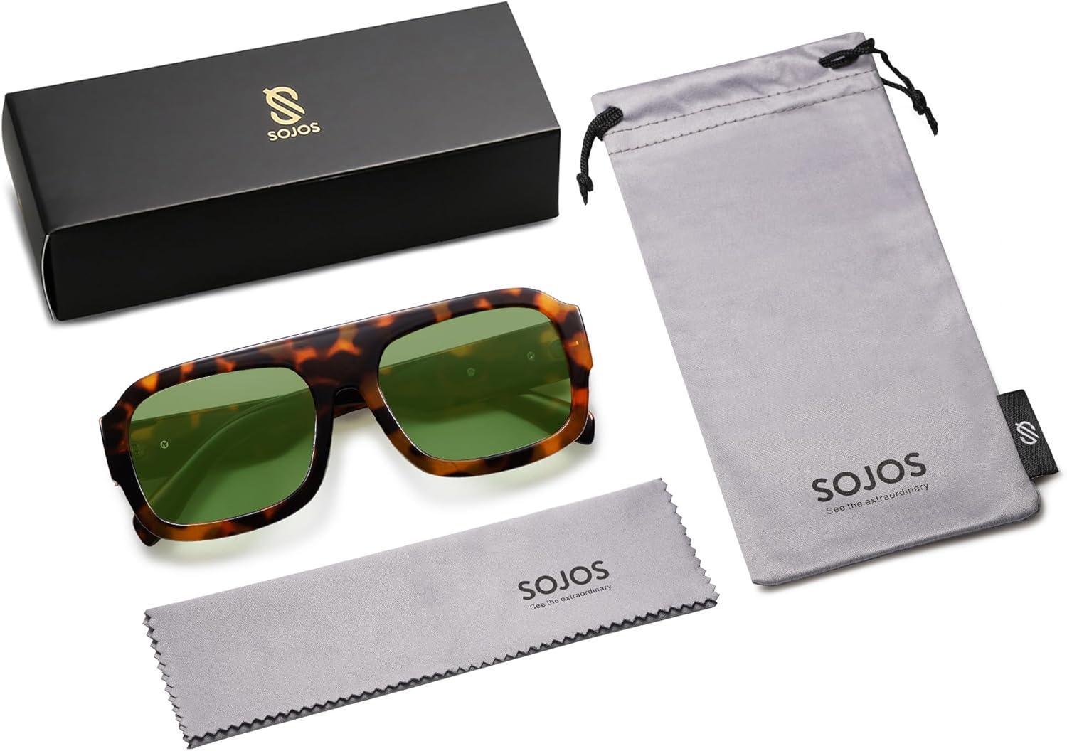 imageSOJOS Trendy Square Aviator Sunglasses for Womens Mens Polarized Flat Top Designer Inspired UV400 Sun Glasses SJ2281Demi