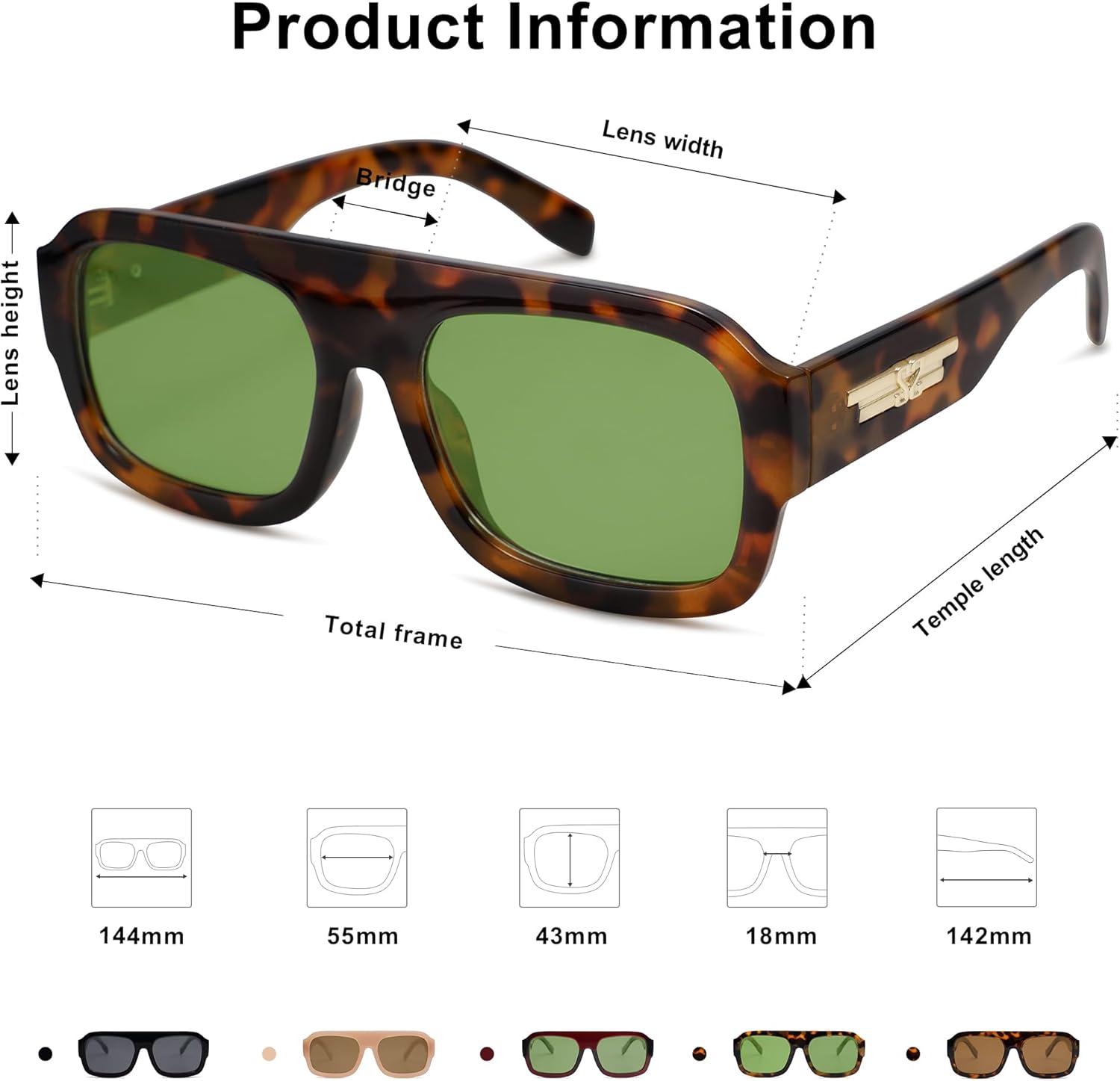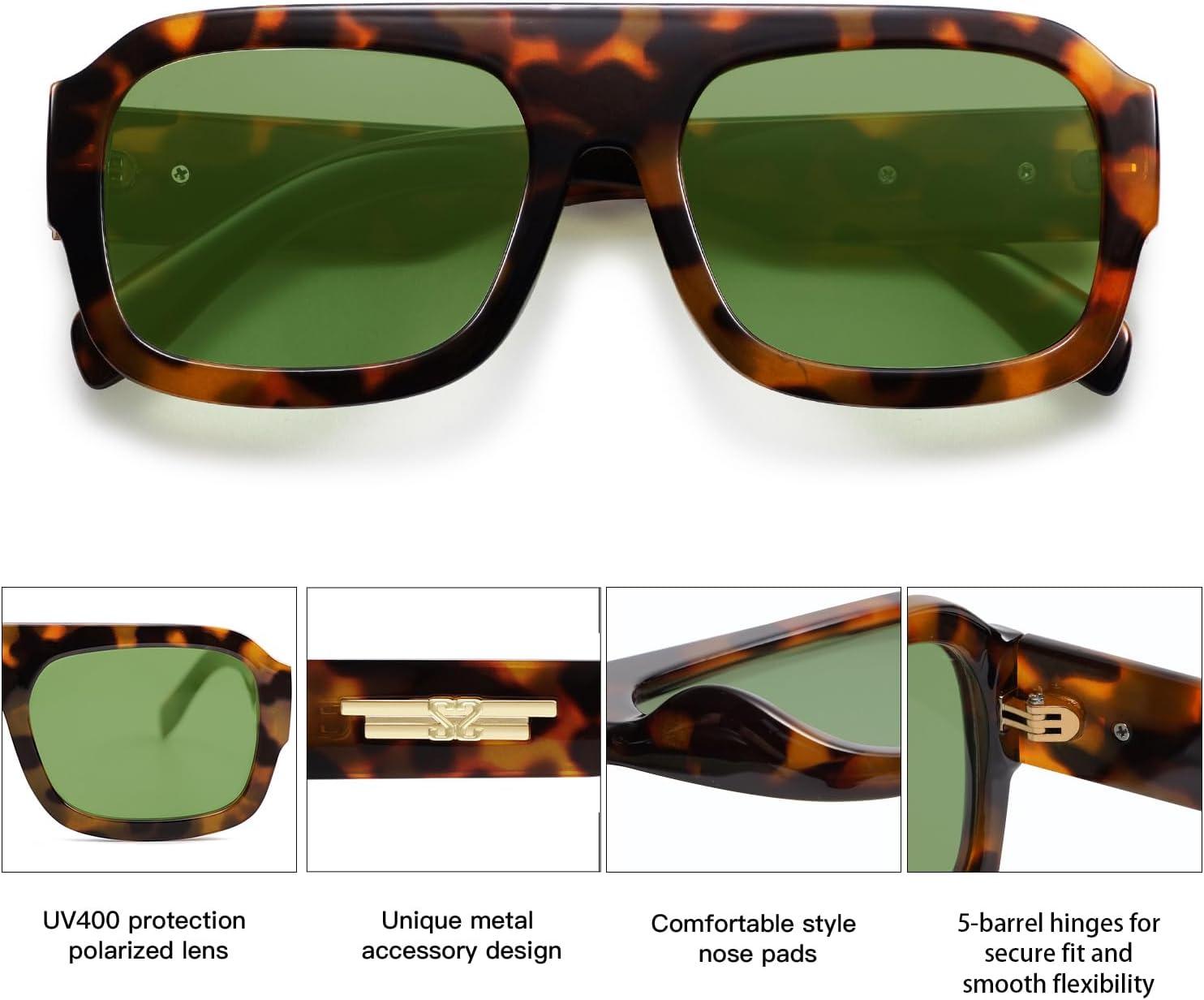 SOJOS Trendy Square Aviator Sunglasses for Womens Mens Polarized Flat Top Designer Inspired UV400 Sun Glasses SJ2281(Demi)