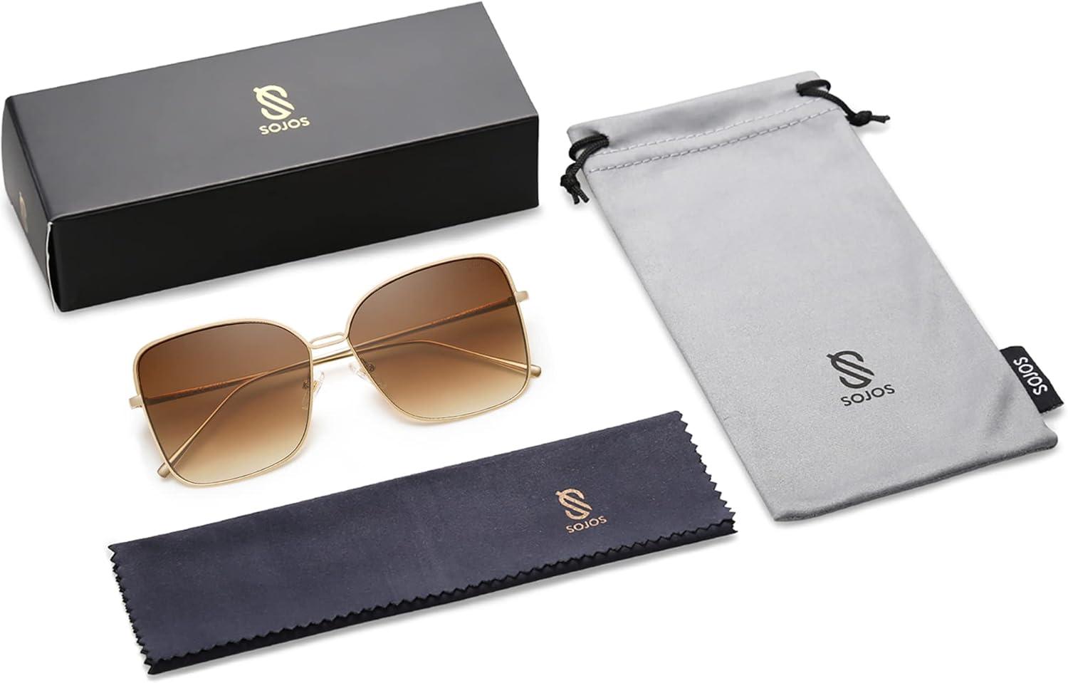 SOJOS Trendy Square Oversized Sunglasses Womens Mens UV400 Big Large Designer Shades SJ1082(Gold/Gradient Brown)