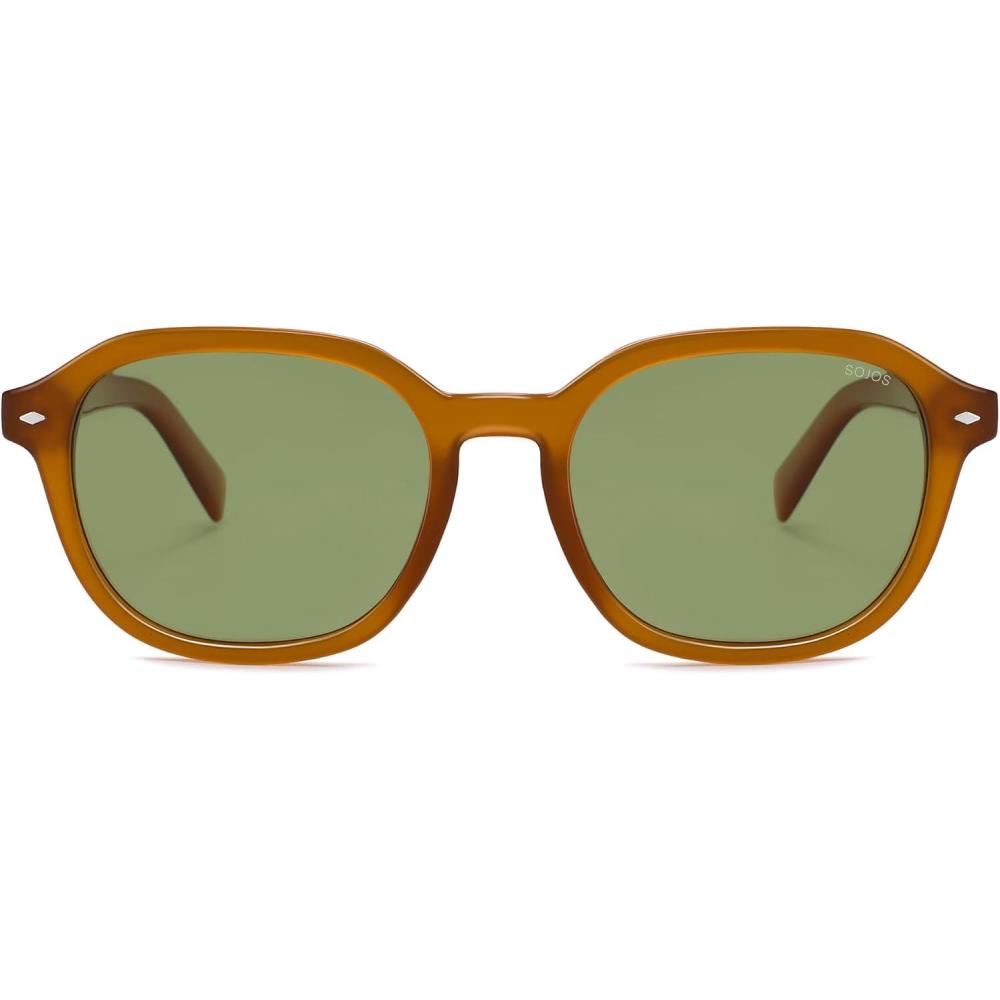 SOJOS Trendy Square Polarized Sunglasses for Women Men, Retro Vintage UV Protection Womens Mens Sun Glasses SJ2624(Honey-yellow/Light Green)