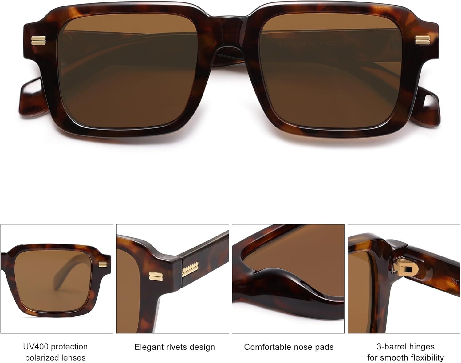 imageSOJOS Trendy Square Polarized Sunglasses for Women Men Retro Vintage Womens Mens Rectangle Shades SJ2345Brown TortoiseBrown