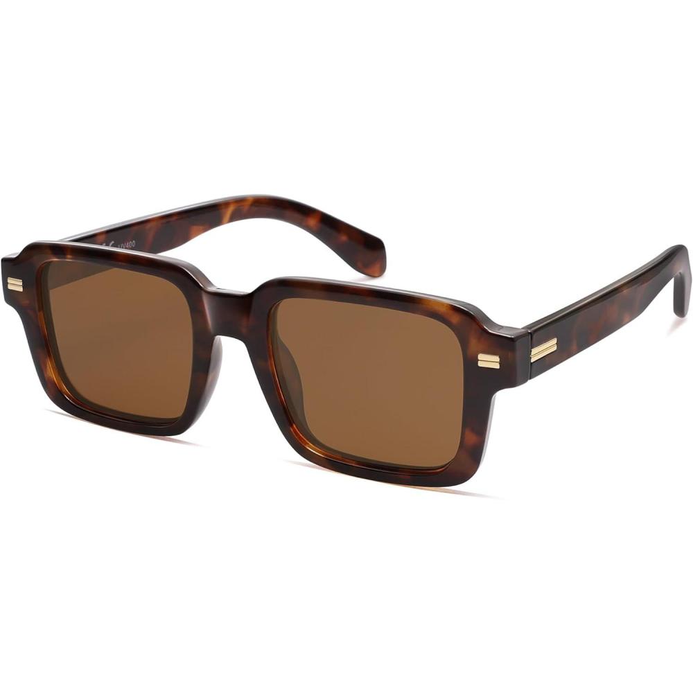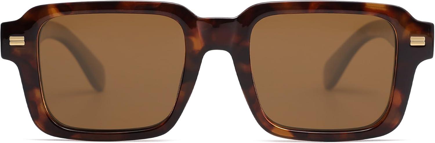 SOJOS Trendy Square Polarized Sunglasses for Women Men, Retro Vintage Womens Mens Rectangle Shades SJ2345(Brown Tortoise/Brown)