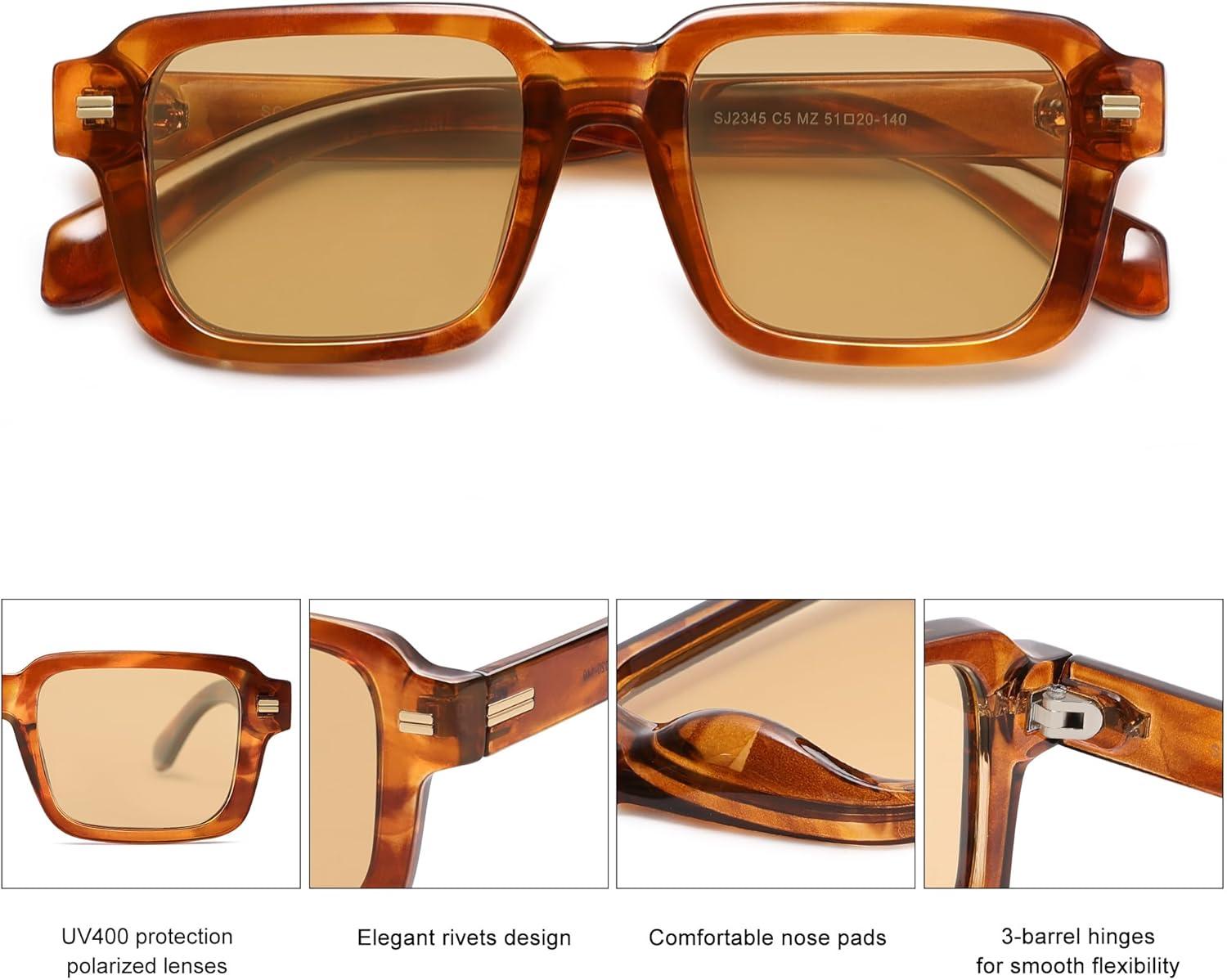 imageSOJOS Trendy Square Polarized Sunglasses for Women Men Retro Vintage Womens Mens Rectangle Shades SJ2345Deep CaramelLight Brown Tint