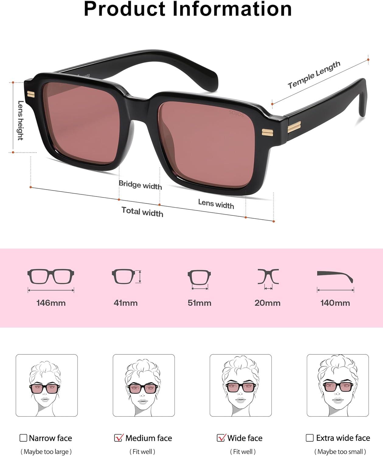 imageSOJOS Trendy Square Polarized Sunglasses for Women Men Retro Vintage Womens Mens Rectangle Shades SJ2345Shiny BlackRed Tint