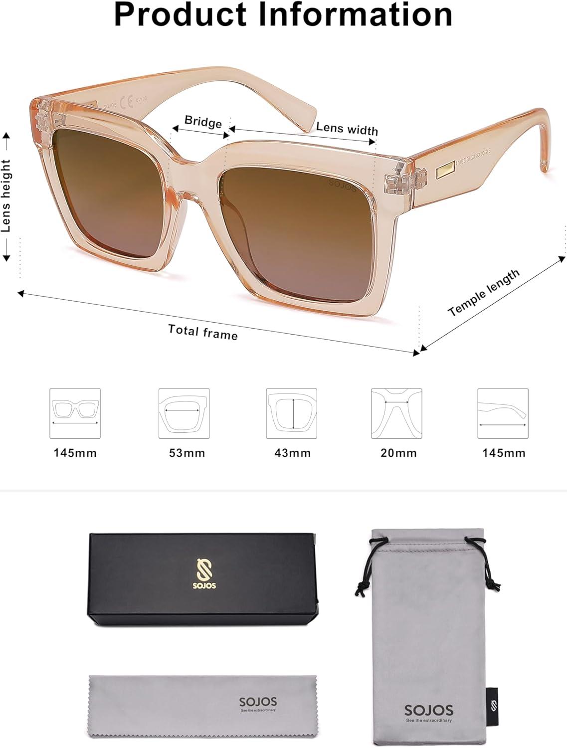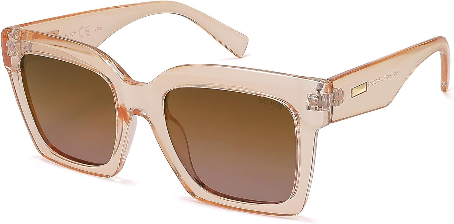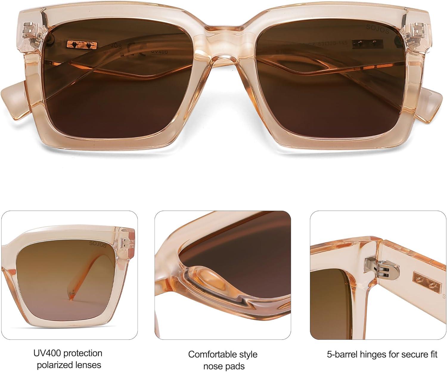 imageSOJOS Trendy Square Polarized Sunglasses for Womens MensRetro Plastic Frame Shades Designer Inspired Sun Glasses SJ2306Demi
