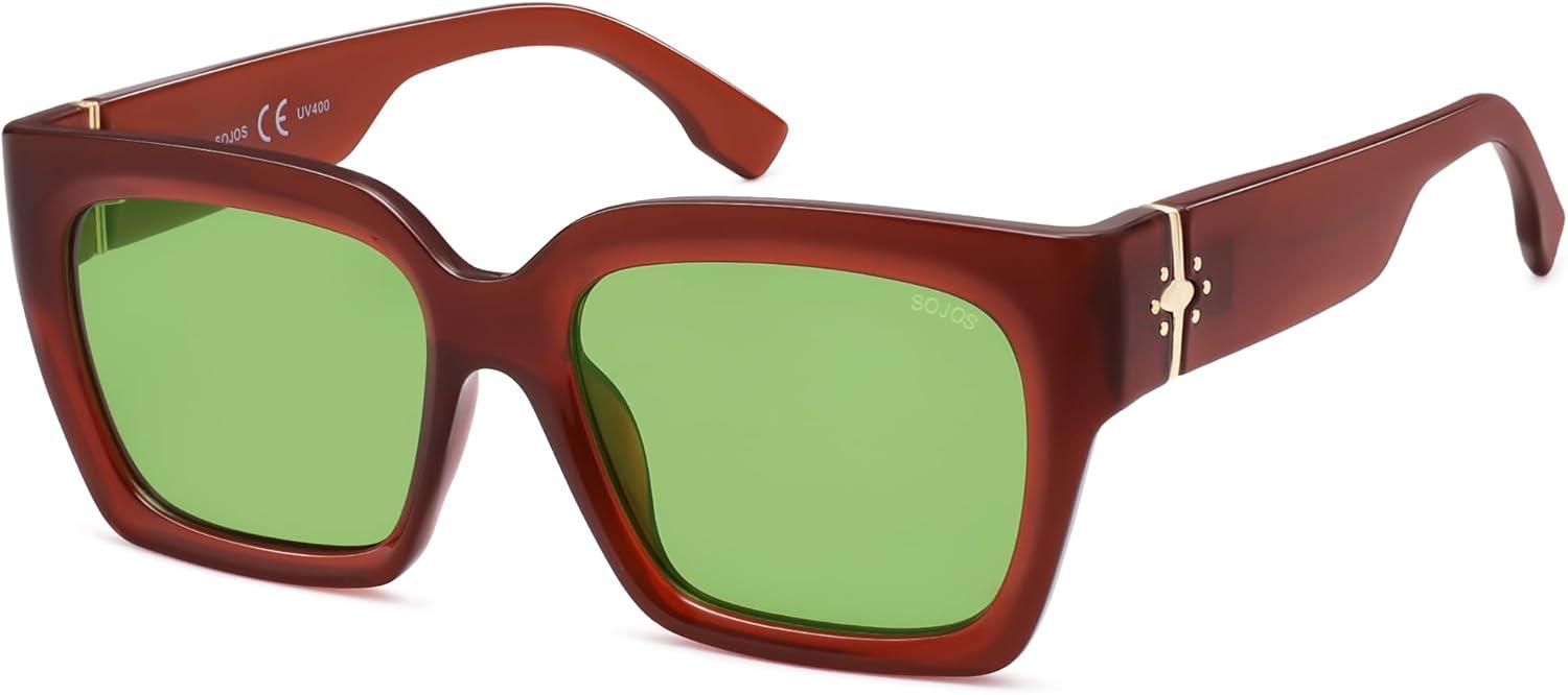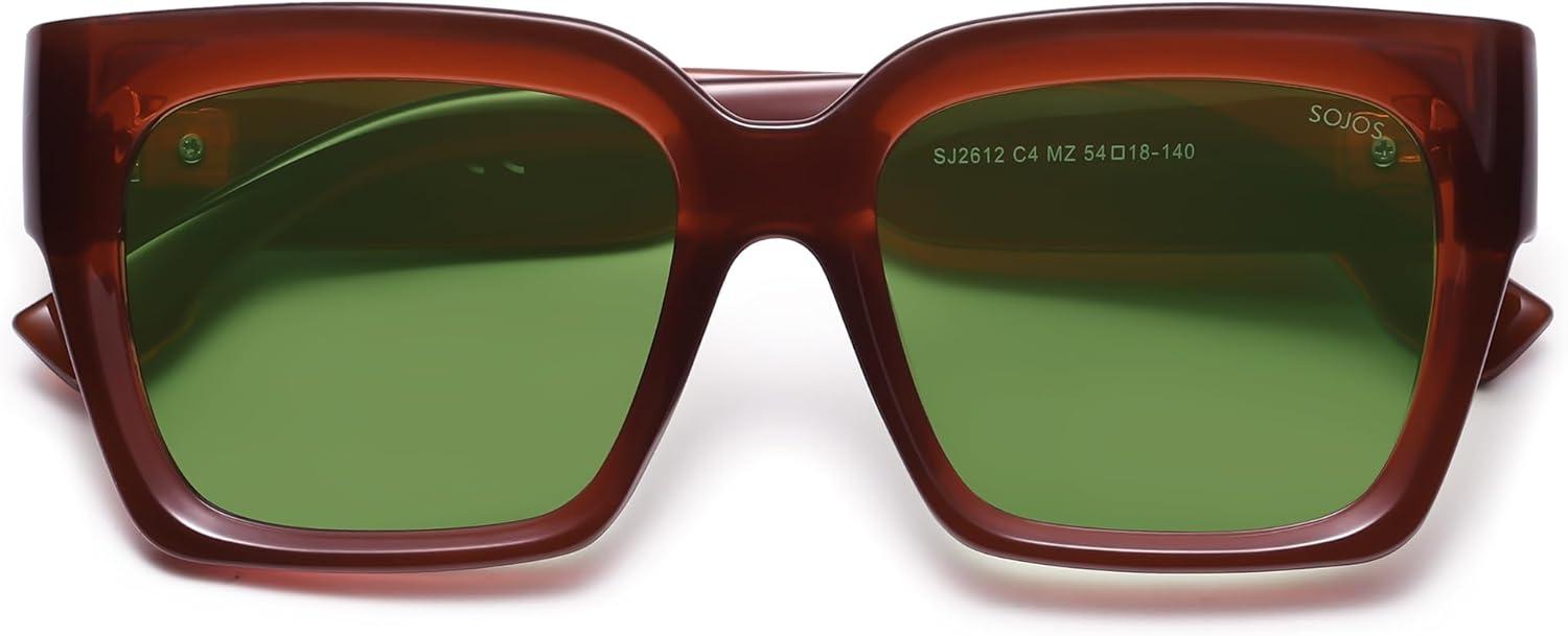 SOJOS Trendy Square Polarized Sunglasses Womens Retro Vintage Women 90s Sun Glasses SJ2612(Brown Frame Green Lens)