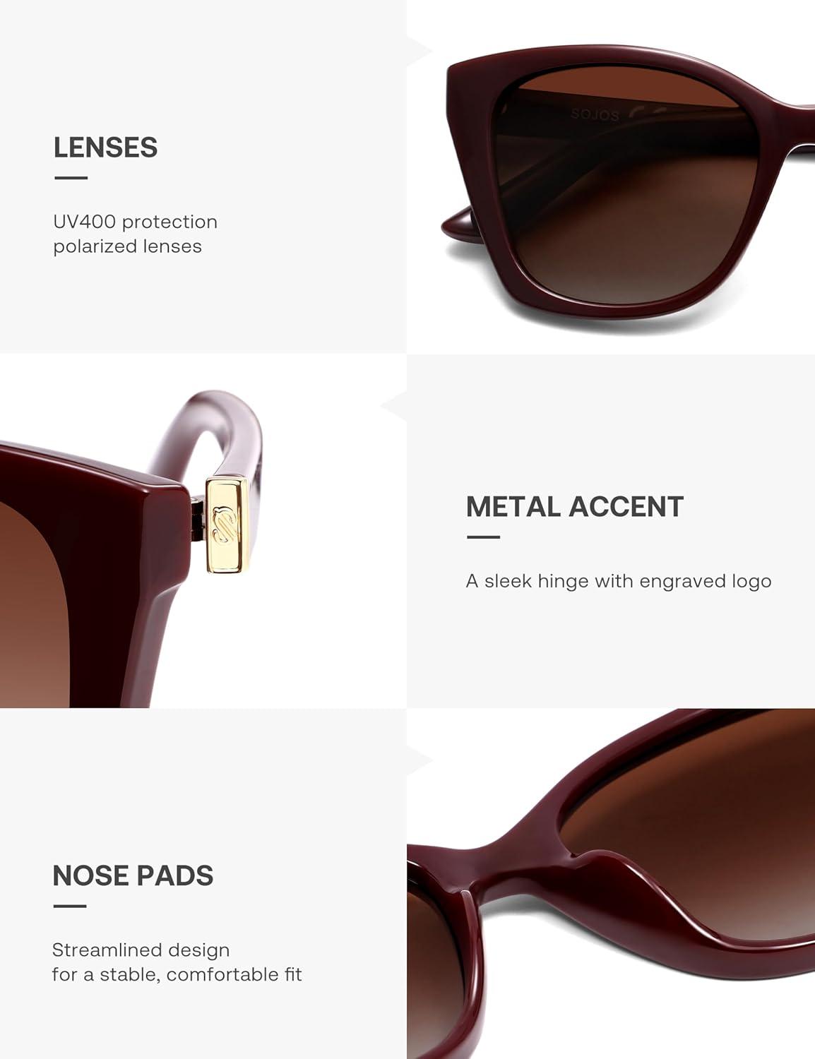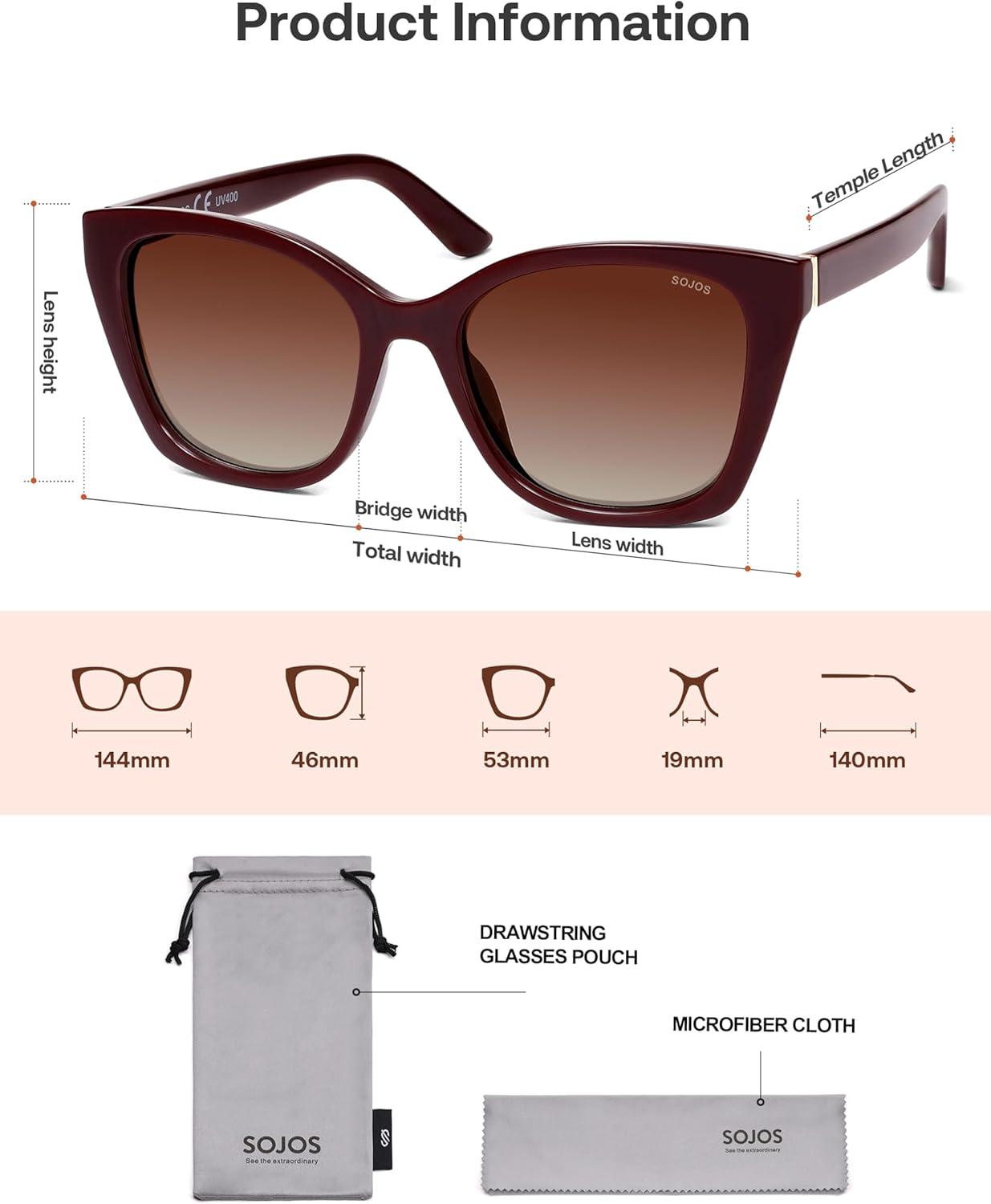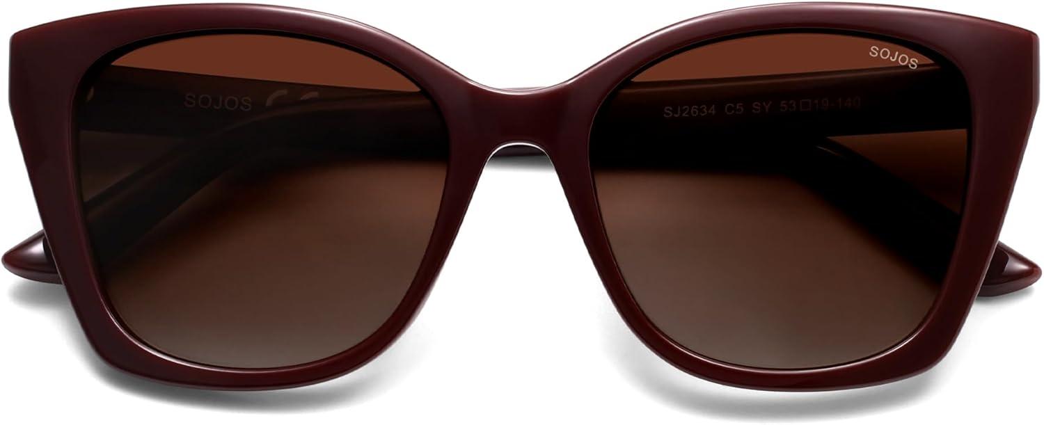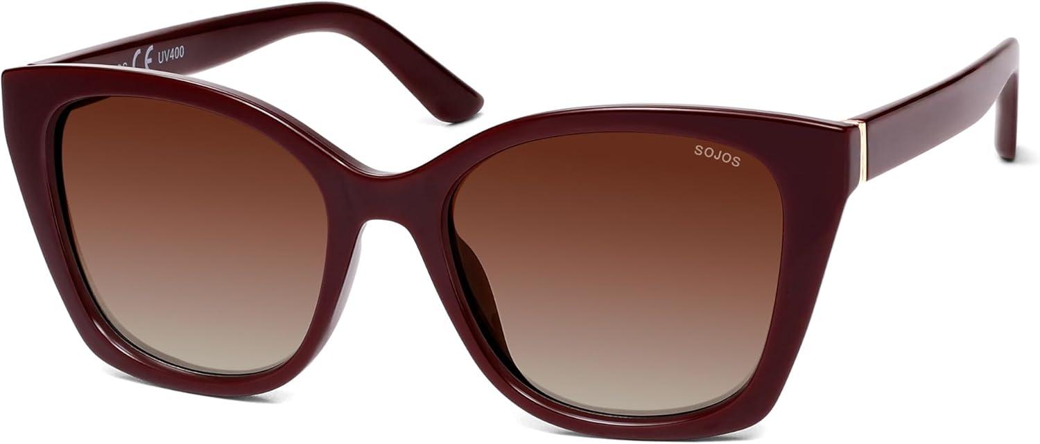 SOJOS Vintage Oversized Cateye Sunglasses Womens UV400 Large Designer Shades Lentes De Sol Para Mujer SJ2634(Red/Red Grading Lens/Mc)