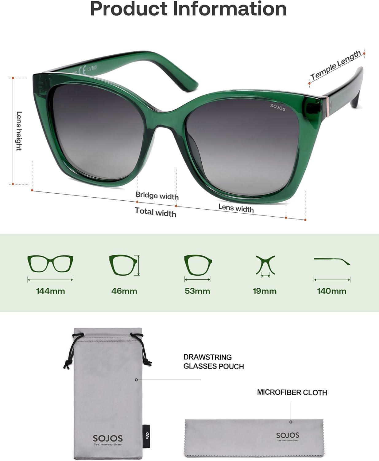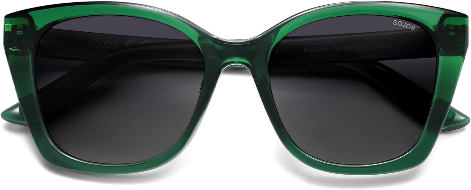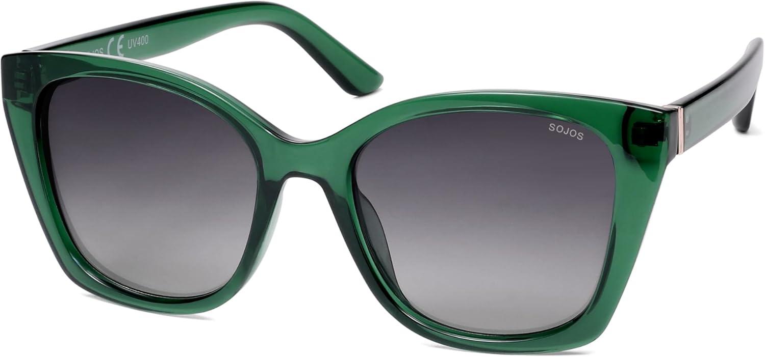 SOJOS Vintage Oversized Cateye Sunglasses Womens UV400 Large Designer Shades Lentes De Sol Para Mujer SJ2634(Transparent Green/Grey Grading Lens)