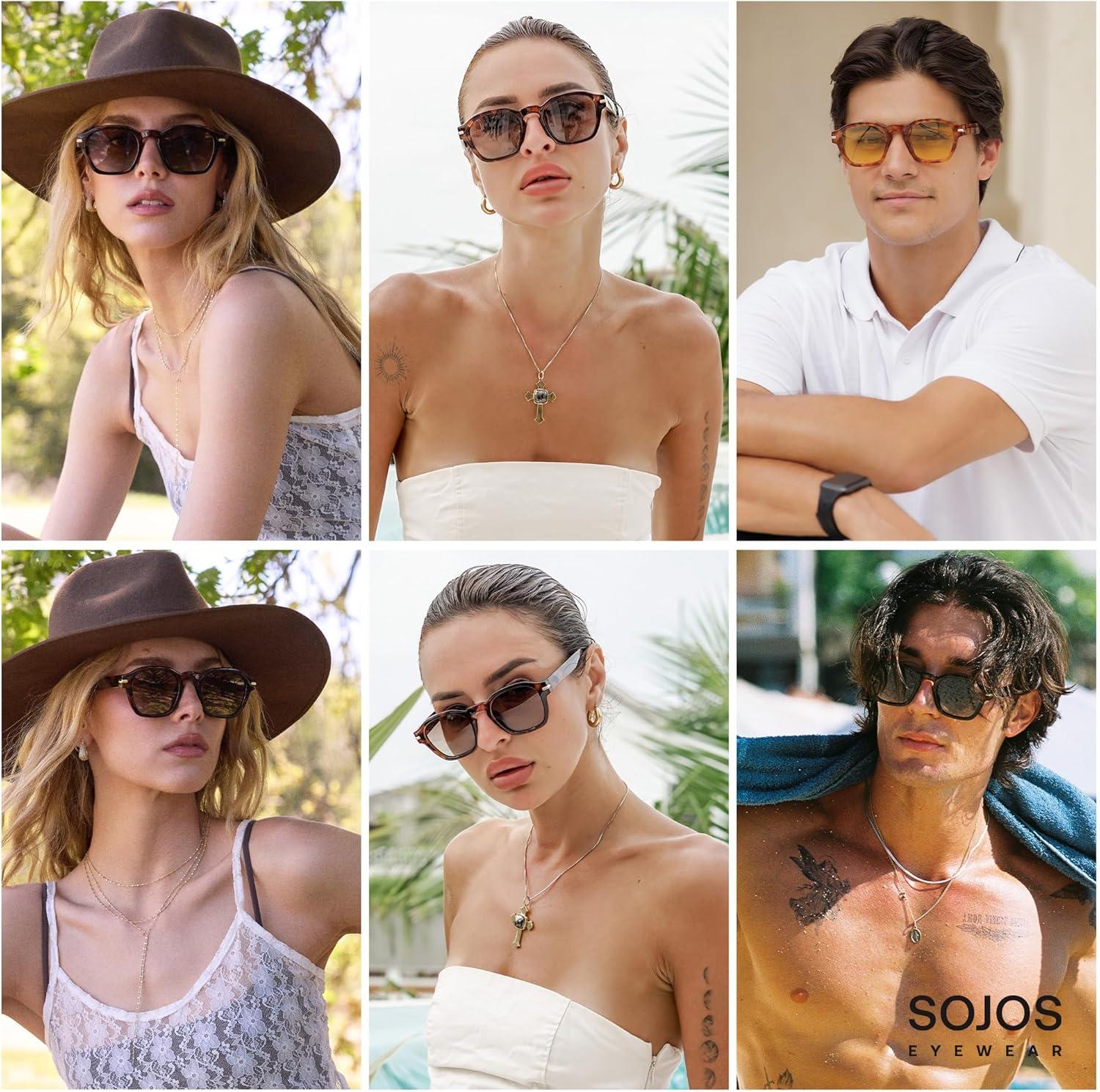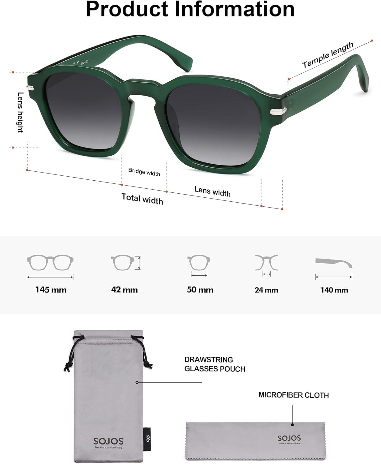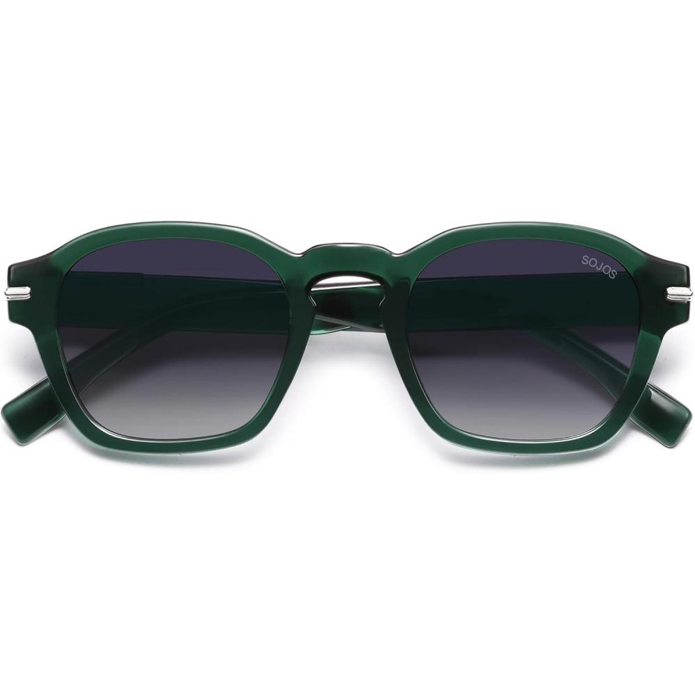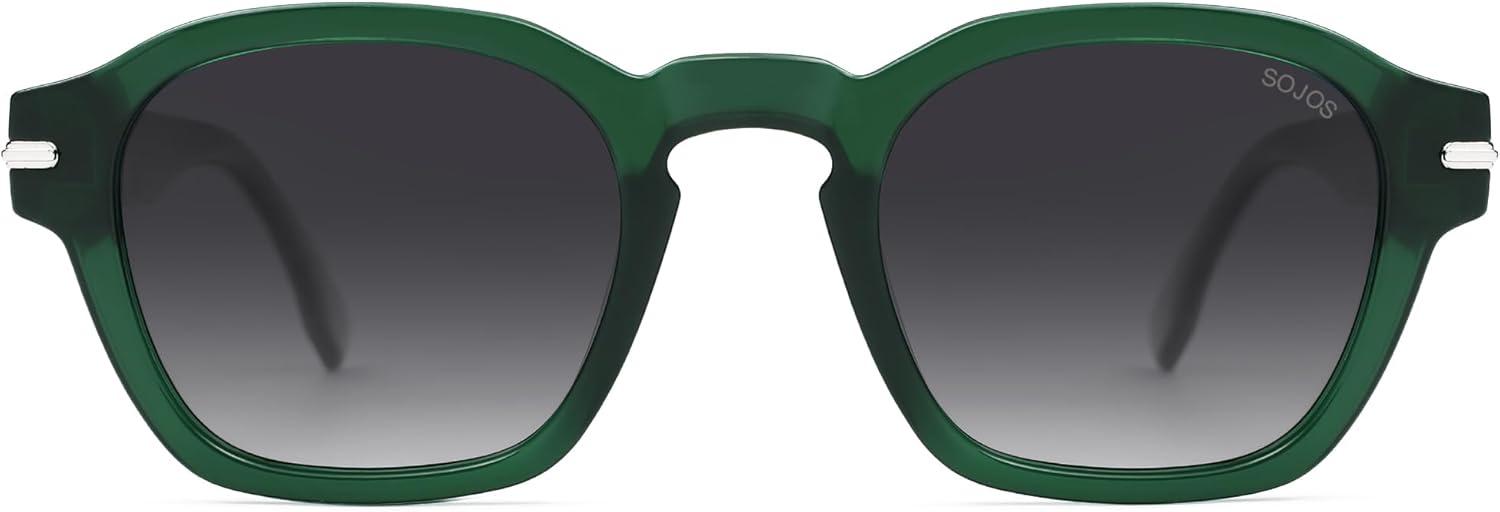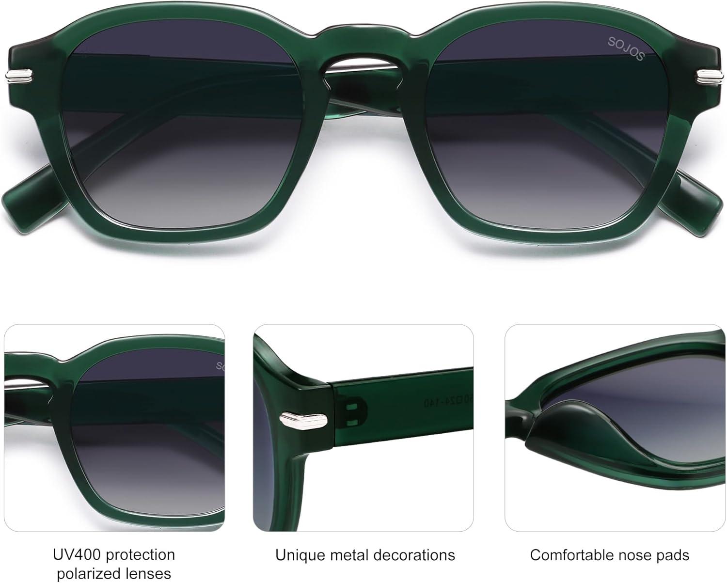 image:imageSOJOS Vintage Retro Square Polarized Sunglasses Men Standard Fit Trendy Womens Sun Glasses SJ2382Crystal Green Frame Green Grading Lens