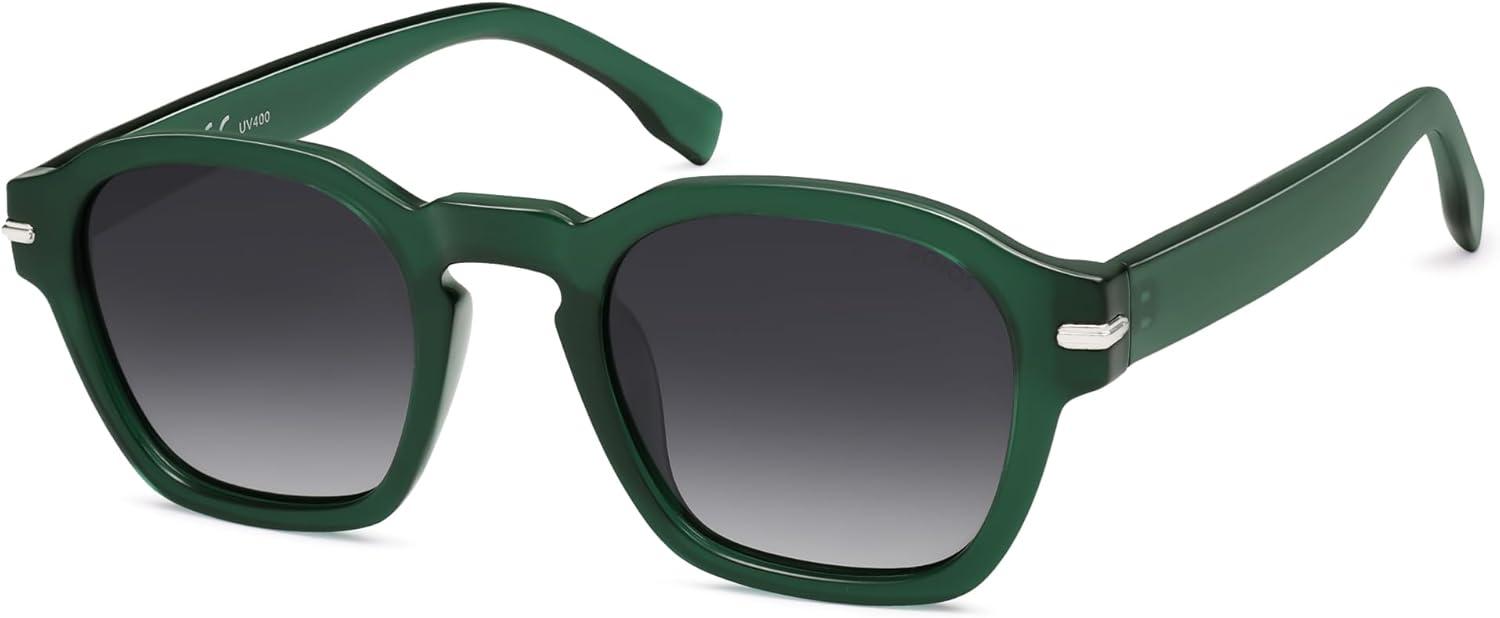 SOJOS Vintage Retro Square Polarized Sunglasses Men Standard Fit Trendy Womens Sun Glasses SJ2382(Crystal Green Frame Green Grading Lens)