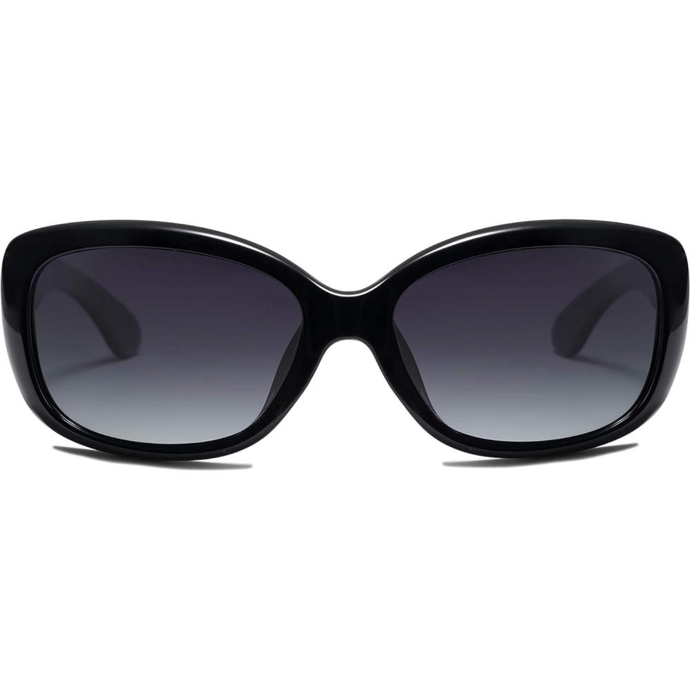 SOJOS Vintage Square Sunglasses for Women Polarized UV Protection Havana Frame SJ2111(Black/Gradient Grey)