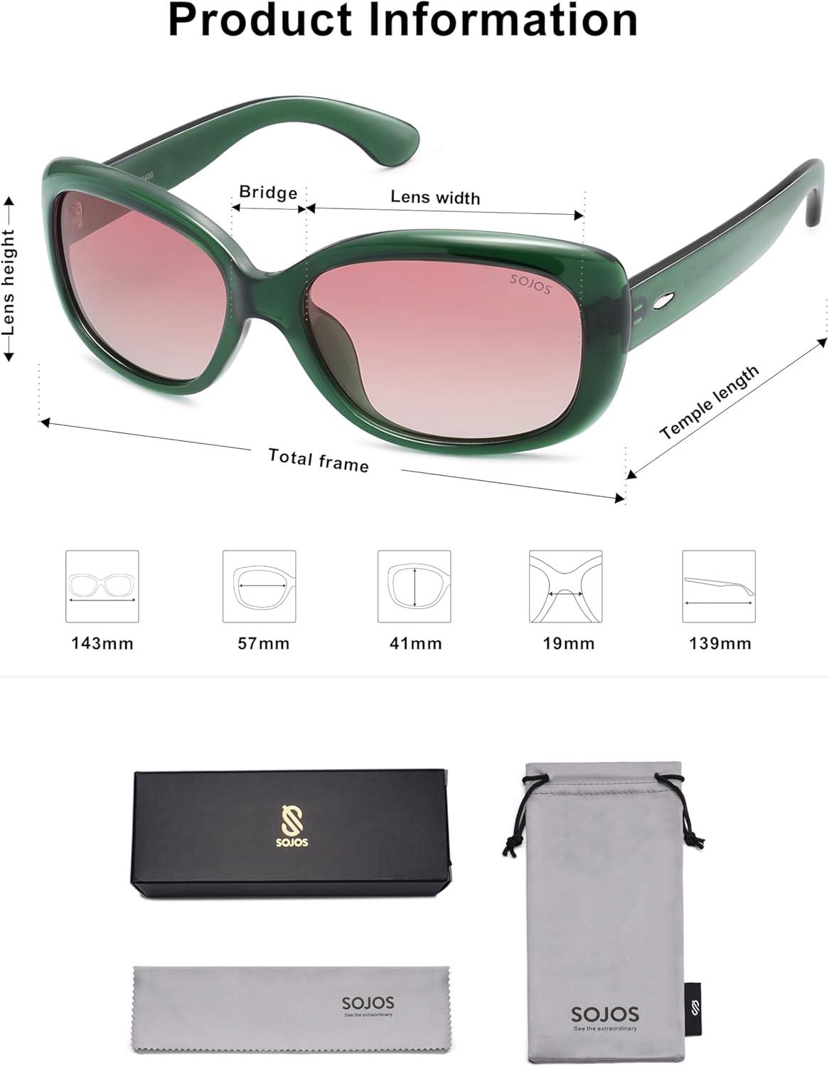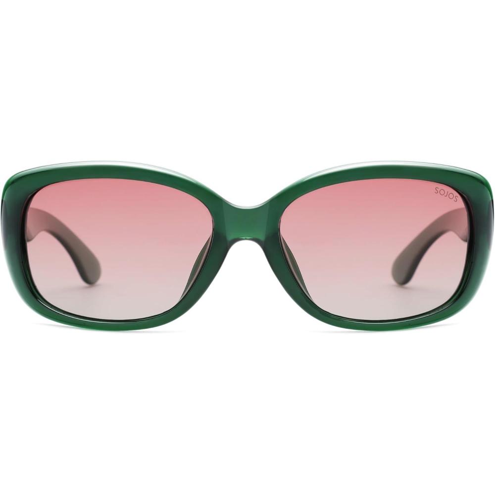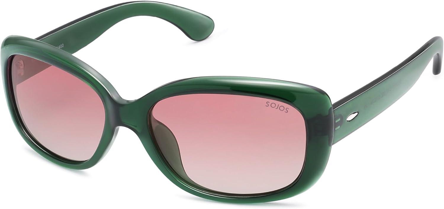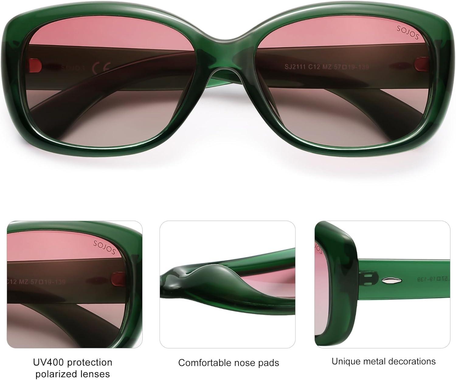 SOJOS Vintage Square Sunglasses for Women Polarized UV Protection Havana Frame SJ2111(C12.green Frame With Pink Grading Lens)