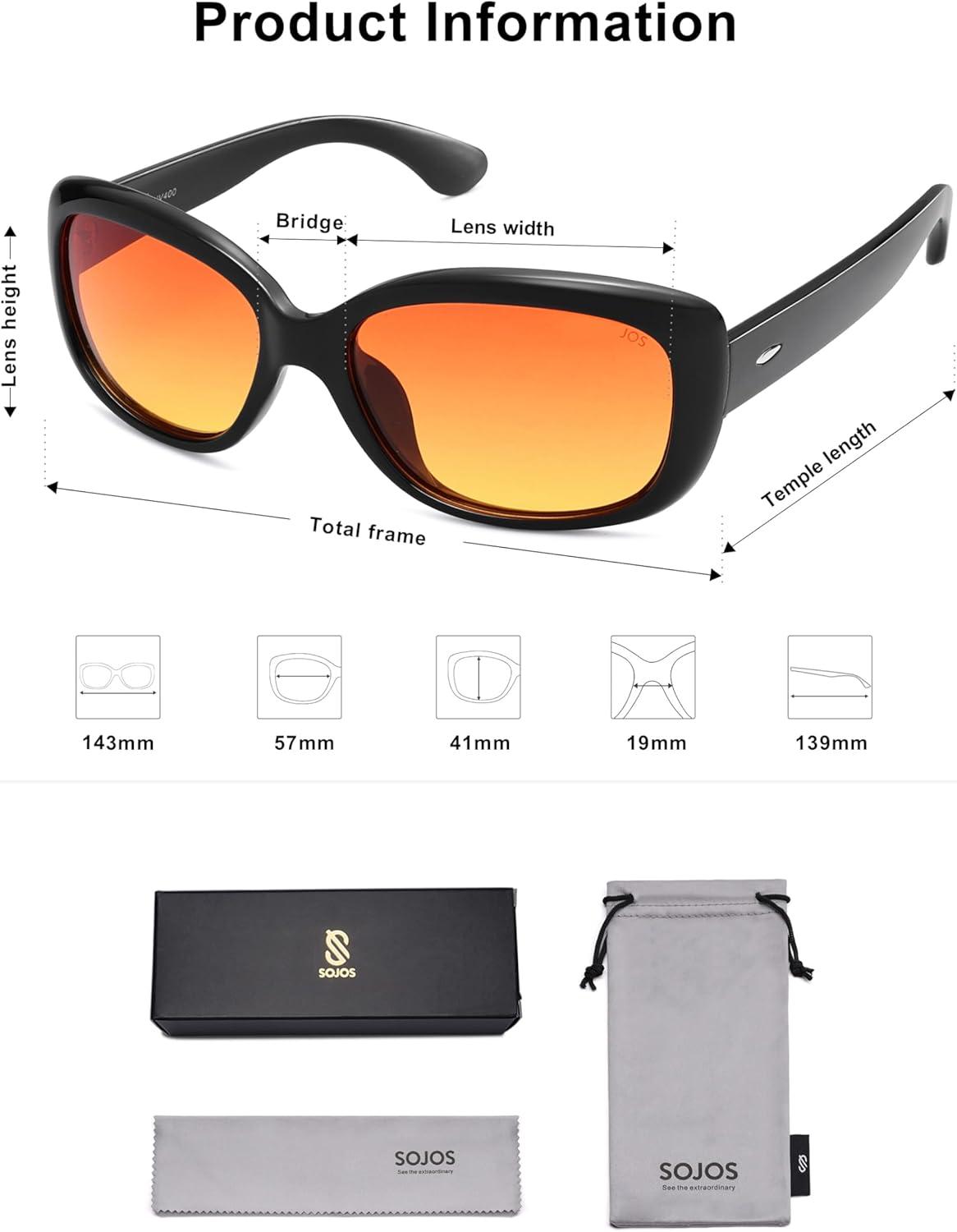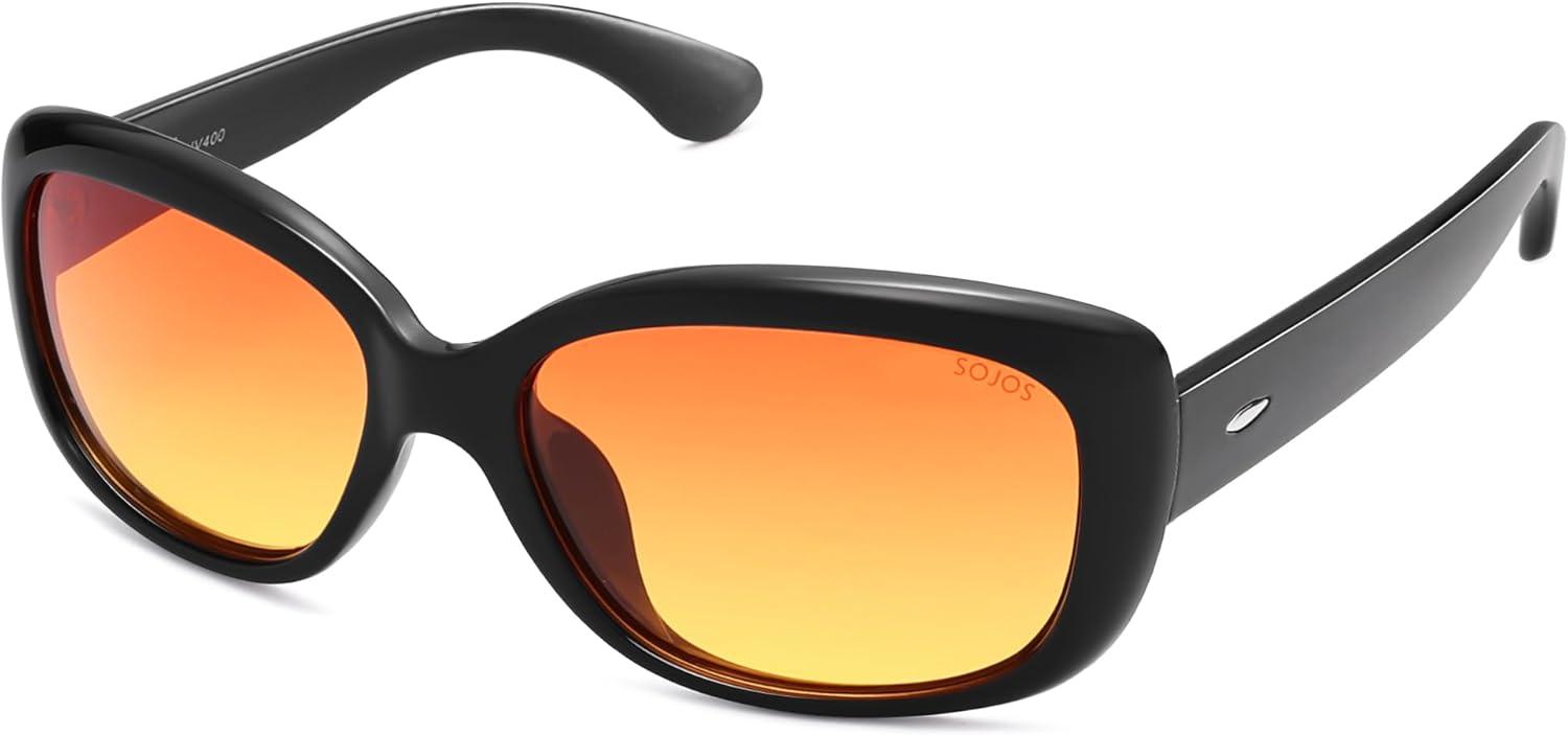 SOJOS Vintage Square Sunglasses for Women Polarized UV Protection Havana Frame SJ2111(C14black Frame/Orange Yellow Lens)
