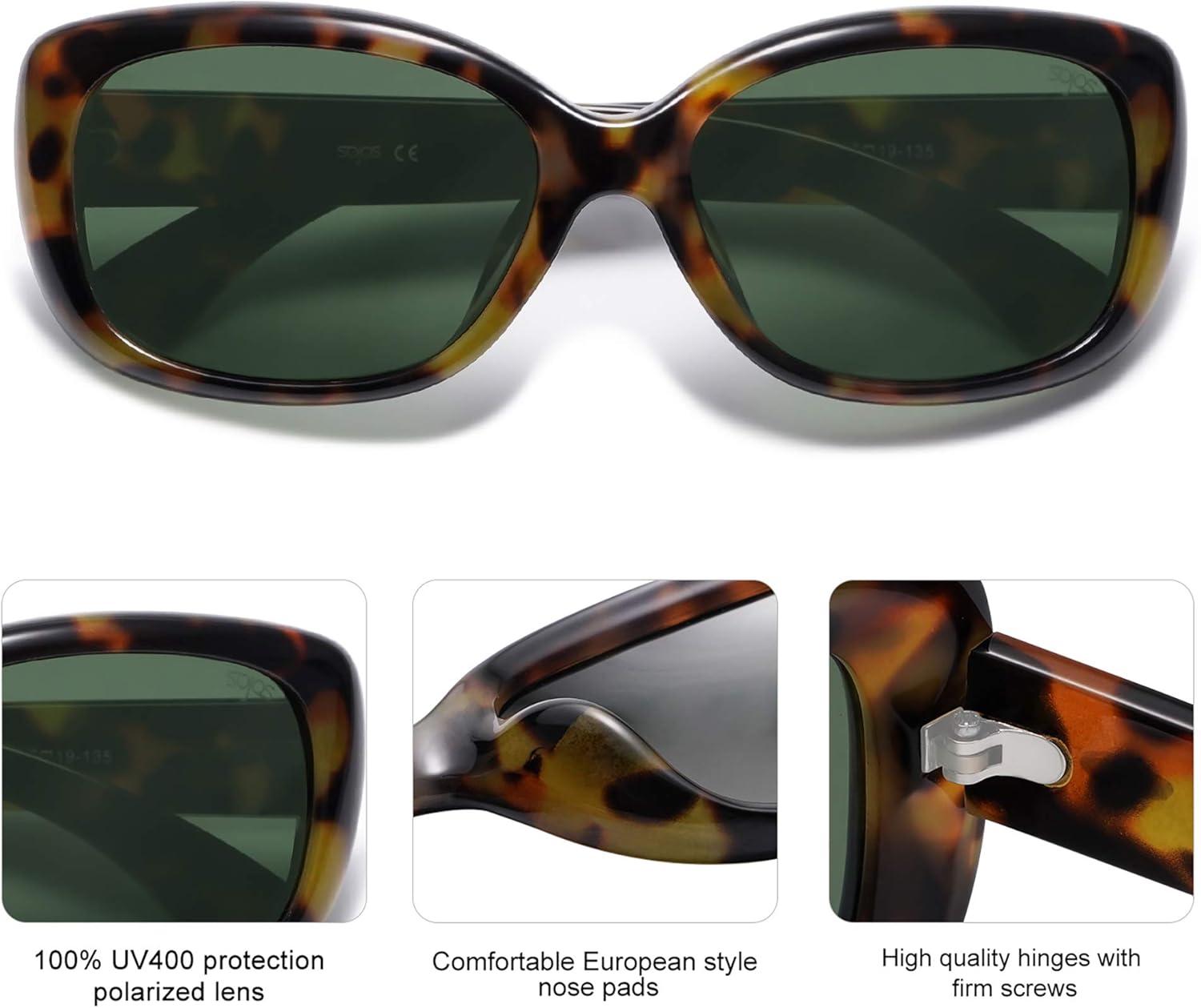 imageSOJOS Vintage Square Sunglasses for Women Polarized UV Protection Havana Frame SJ2111Green TortoiseGreen