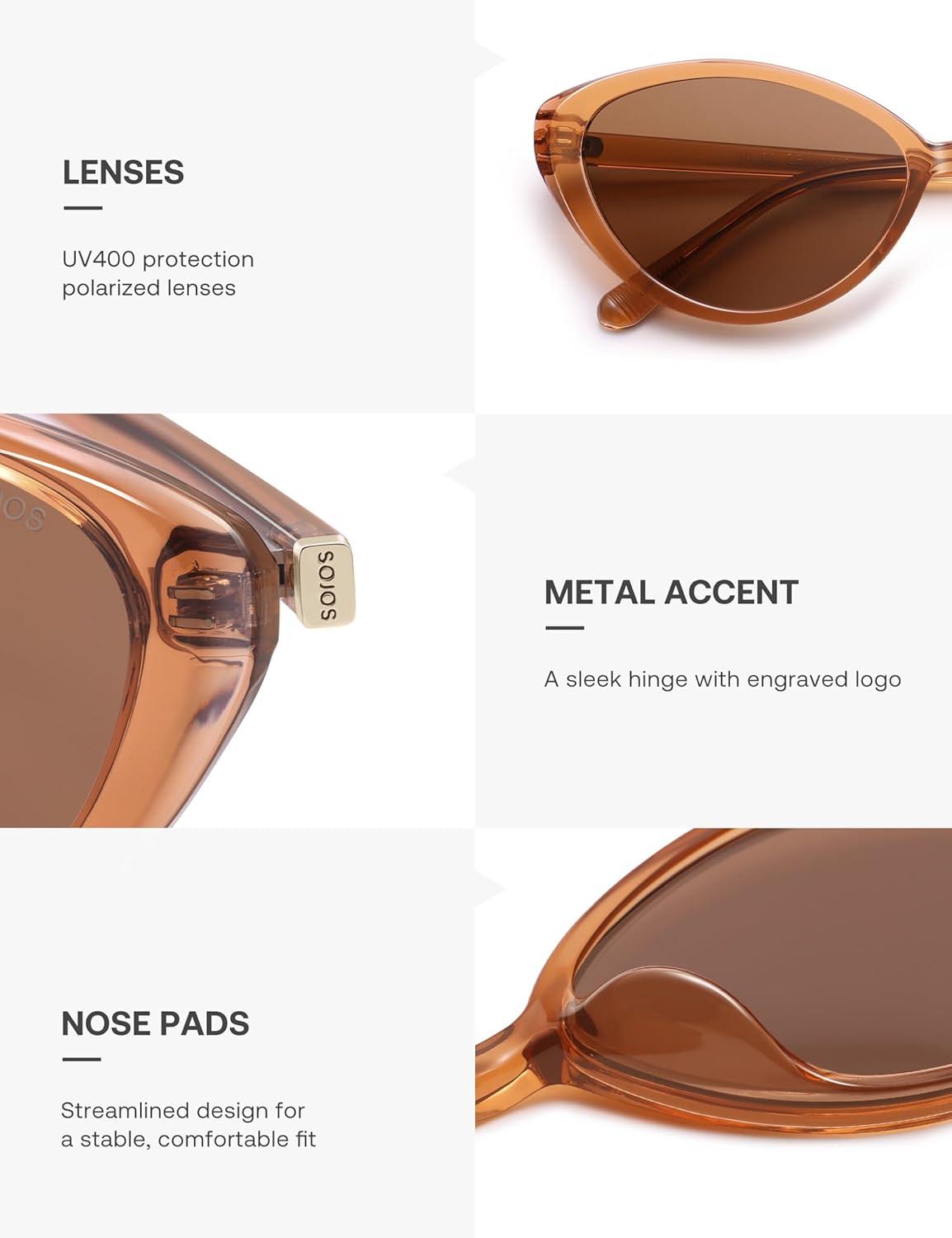 SOJOS Women’s Retro Cat Eye Sunglasses Polarized TR90 Ultra-Lightweight, Oval Vintage Shades UV400 Protection(Brown/Brown)