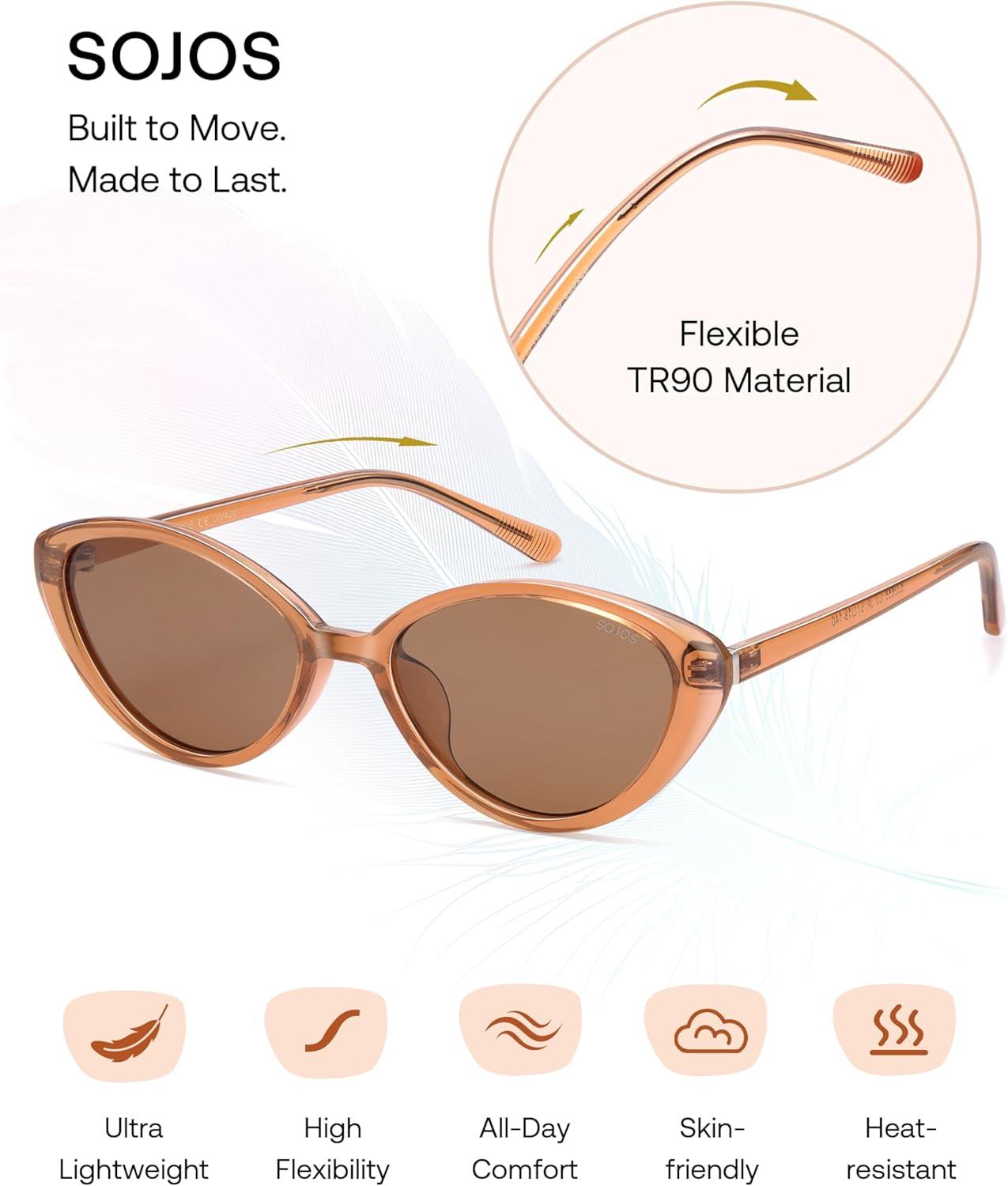 imageSOJOS Womens Retro Cat Eye Sunglasses Polarized TR90 UltraLightweight Oval Vintage Shades UV400 ProtectionBrownBrown