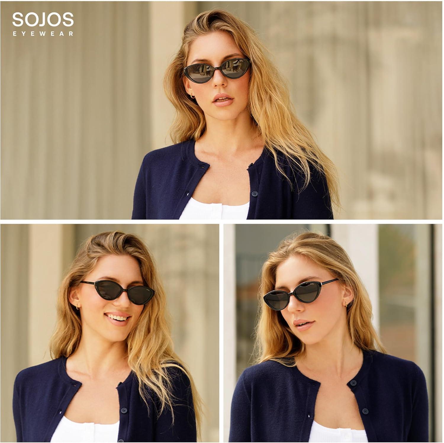 imageSOJOS Womens Retro Cat Eye Sunglasses Polarized TR90 UltraLightweight Oval Vintage Shades UV400 ProtectionBlueGrey