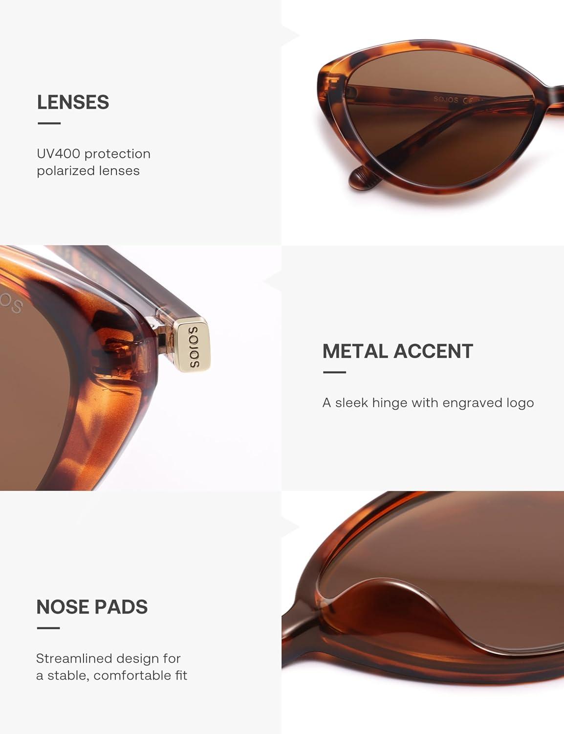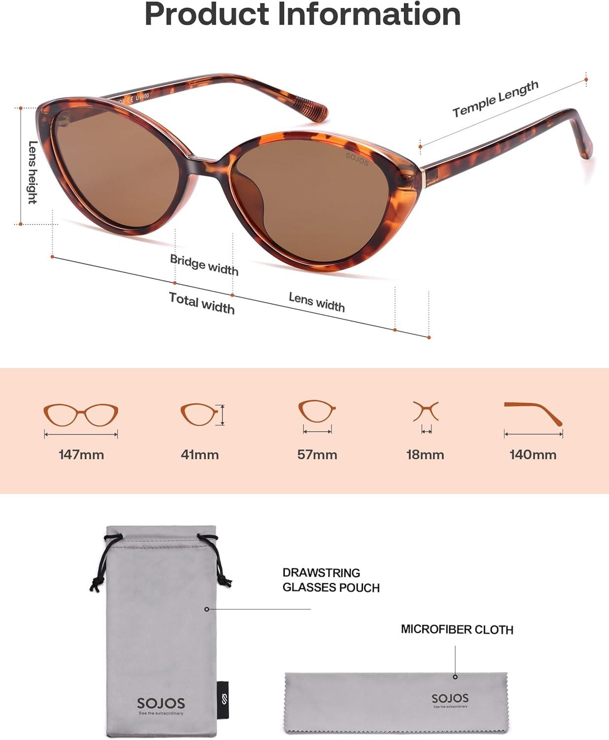 SOJOS Women’s Retro Cat Eye Sunglasses Polarized TR90 Ultra-Lightweight, Oval Vintage Shades UV400 Protection(Tortoise Brown/Brown)