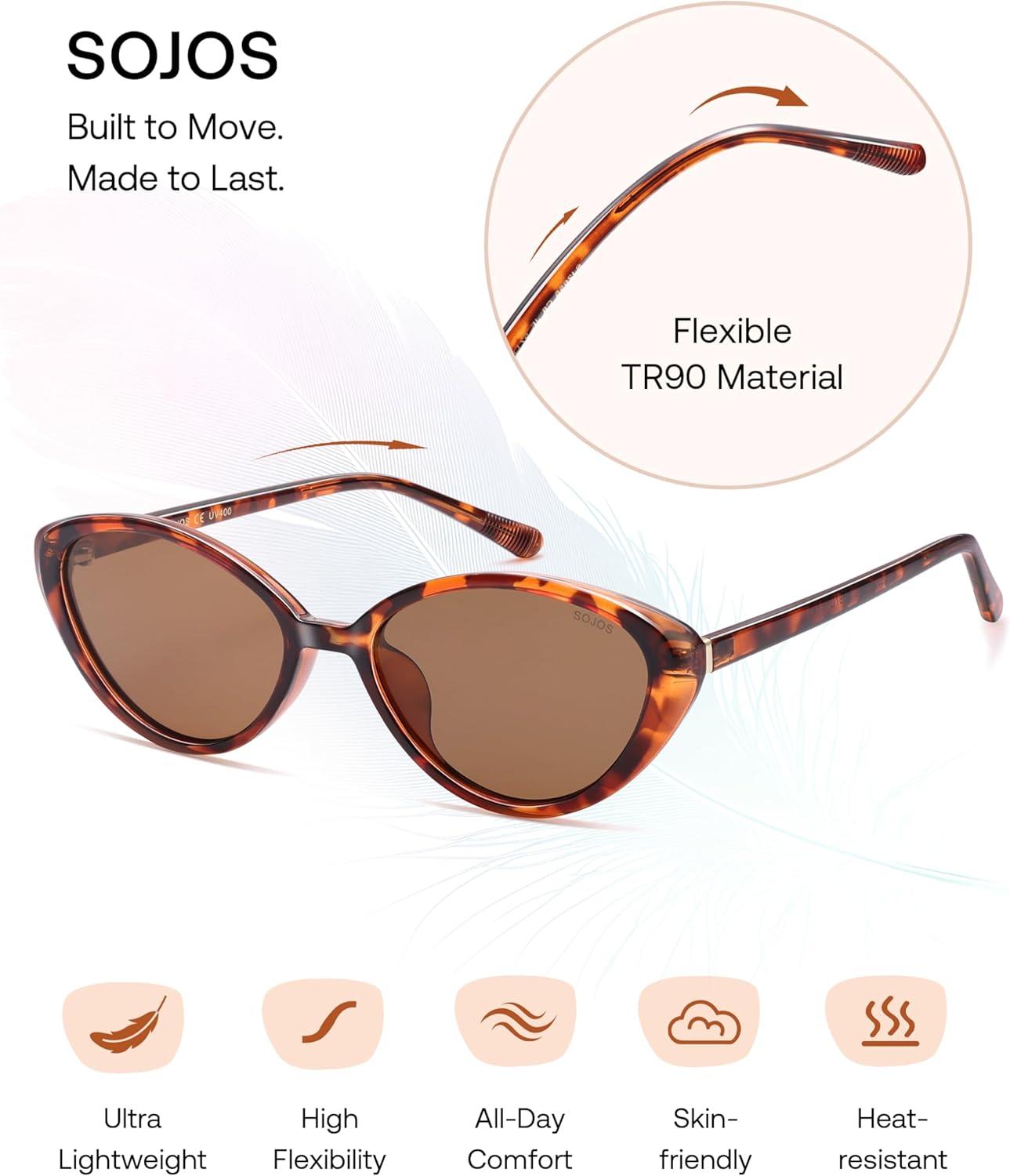 SOJOS Women's Retro Cat Eye Sunglasses Polarized TR90 Ultra-Lightweight, Oval Vintage Shades UV400 Protection(Tortoise Brown/Brown)